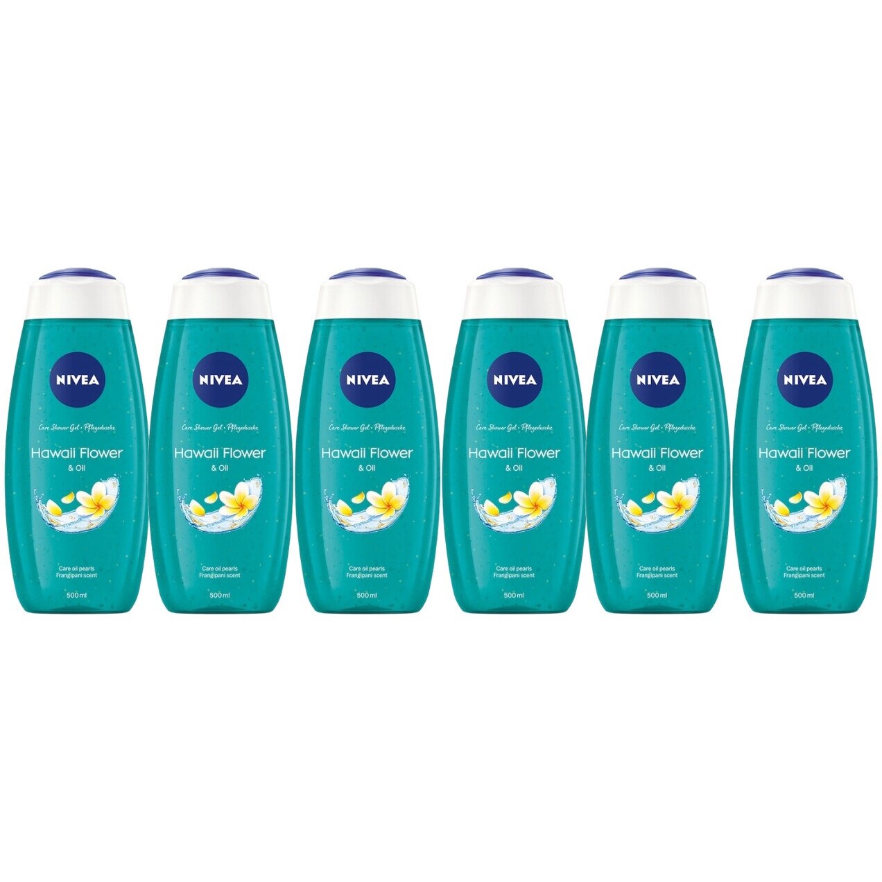 Set 6 x Nivea gel dus 500ml hawaii flower&oil, curatare eficienta, hidratare intensa, aplicare usoara, previne iritatiile, prospetime de lunga durata, testat dermatologic