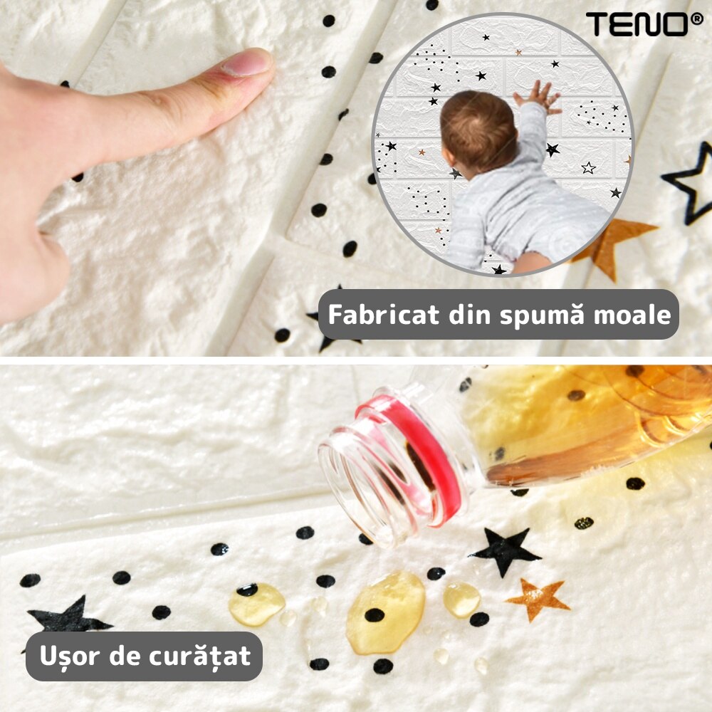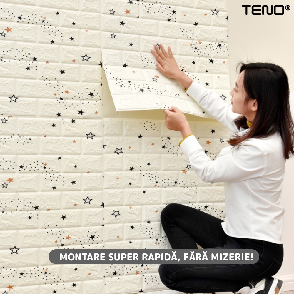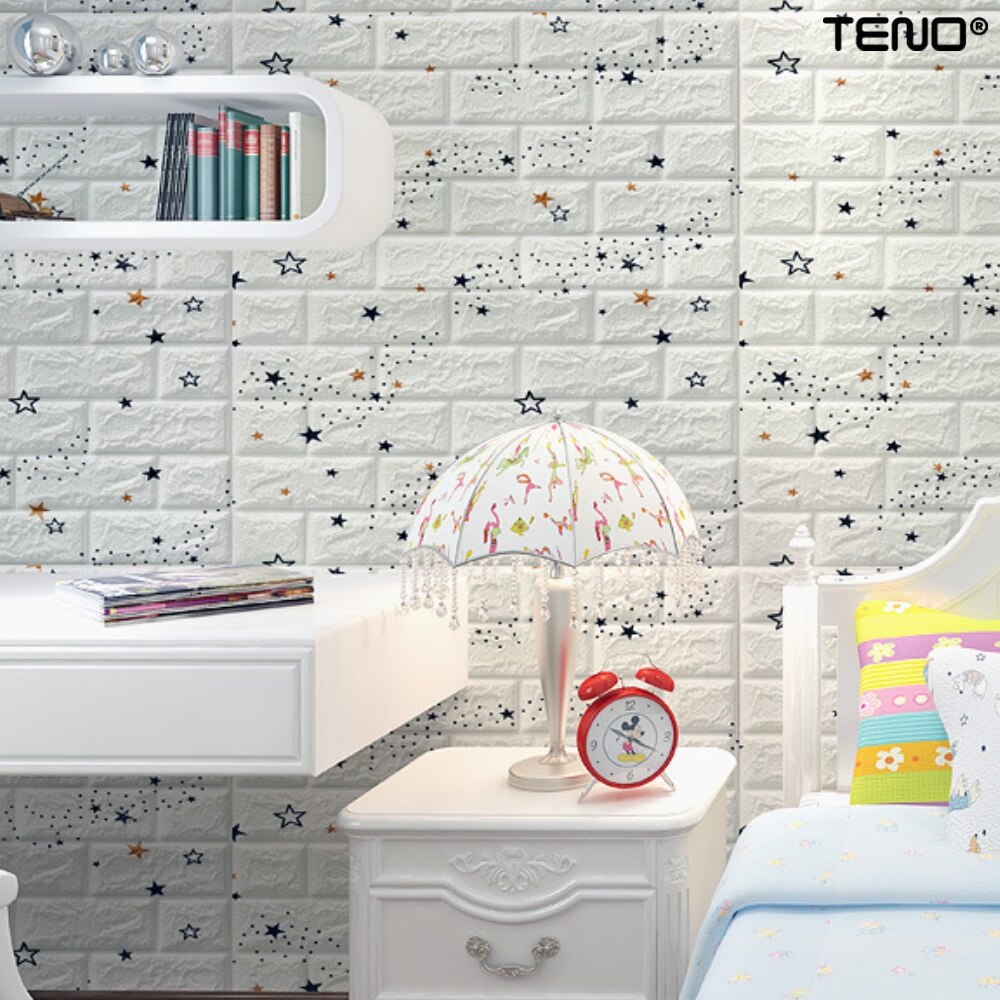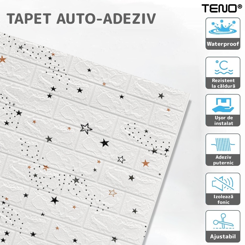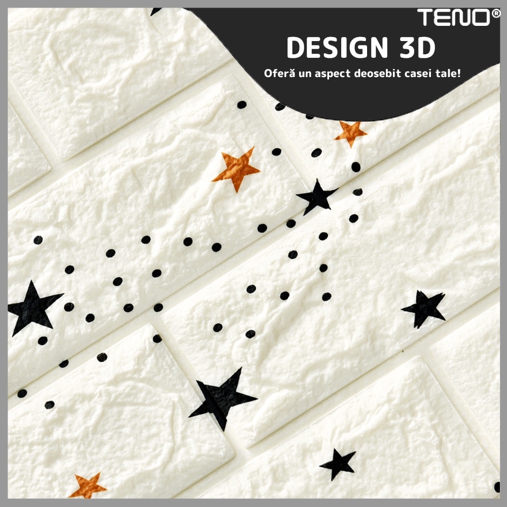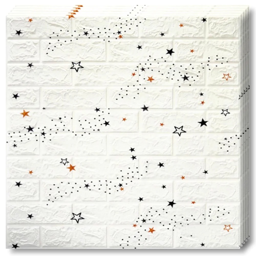 Set 60x Tapet Caramida 3D Teno®, model Stelute, suprafata acoperire 31.8 mp, autoadeziv, waterproof, usor de montat, design modern, 70x77 cm, alb