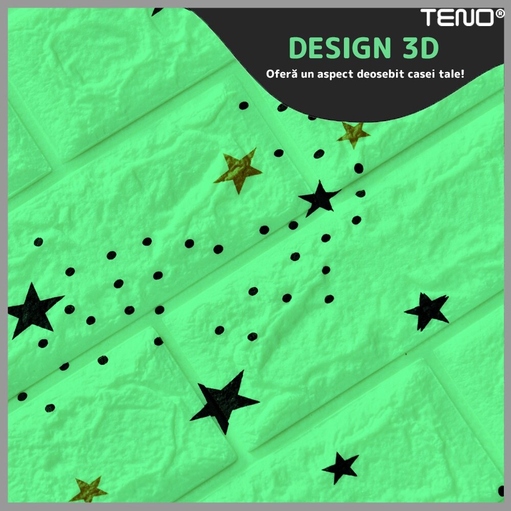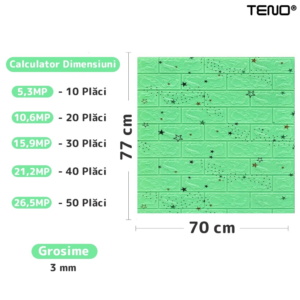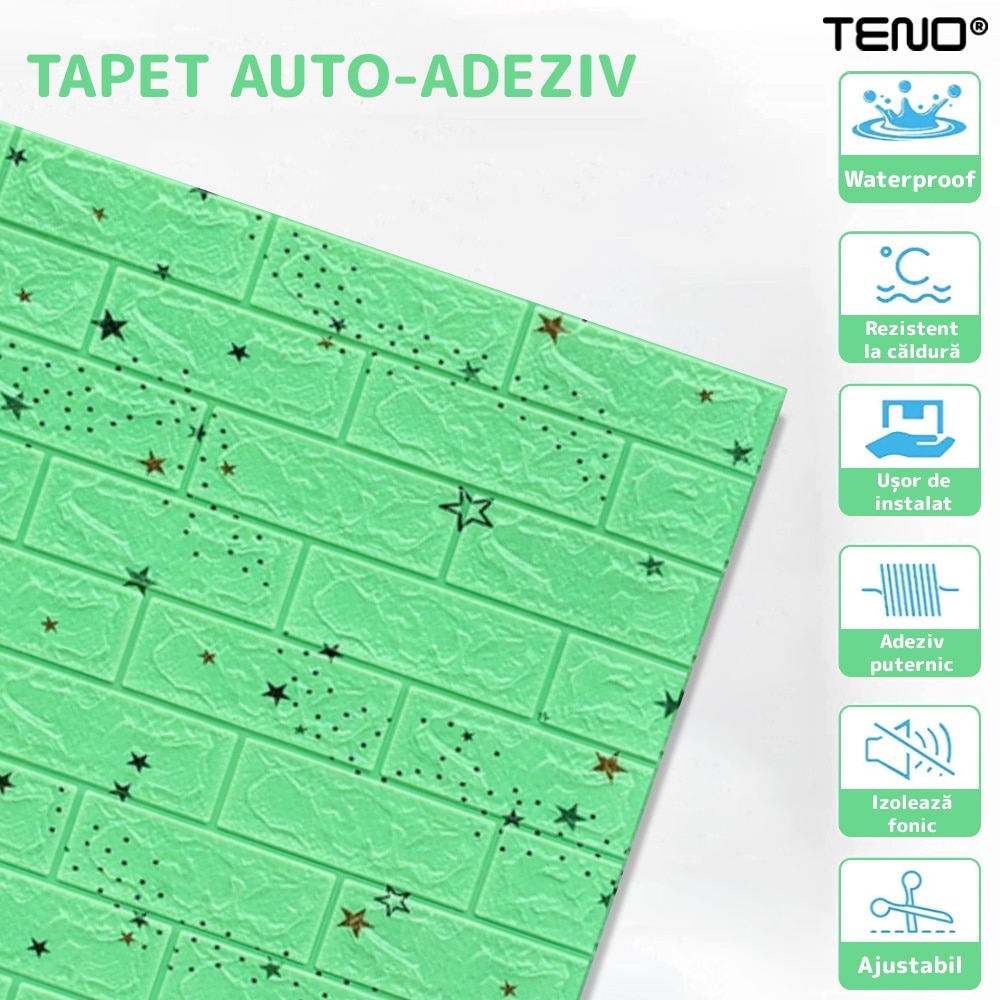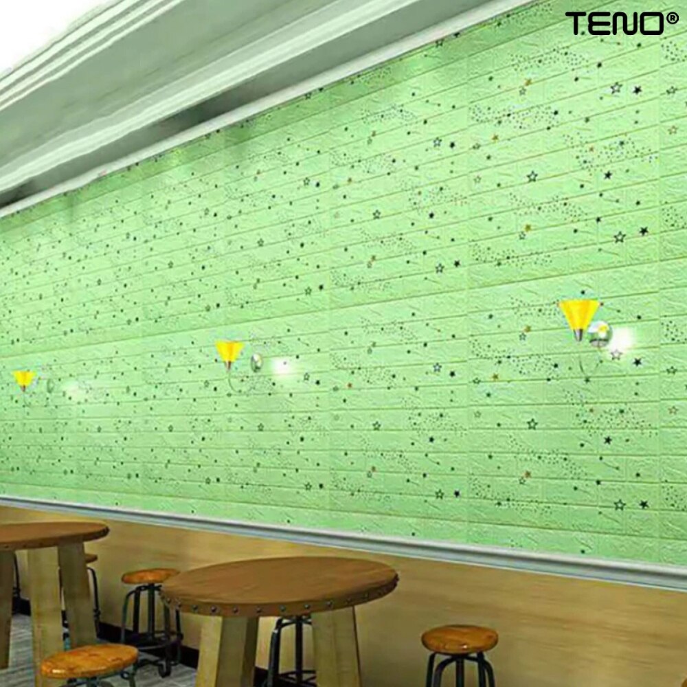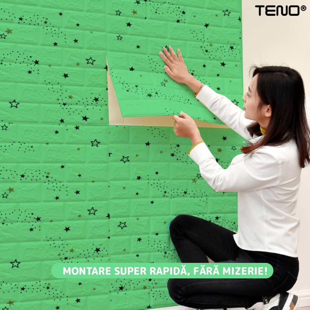 Set 60x Tapet Caramida 3D Teno®, model Stelute, suprafata acoperire 31.8 mp, autoadeziv, waterproof, usor de montat, design modern, 70x77 cm, verde