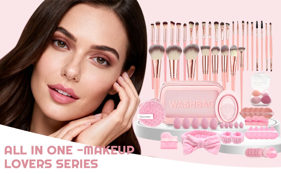 Set 70 pensule machiaj Excitat, bureti si accesorii, ultra-moale, multicolor