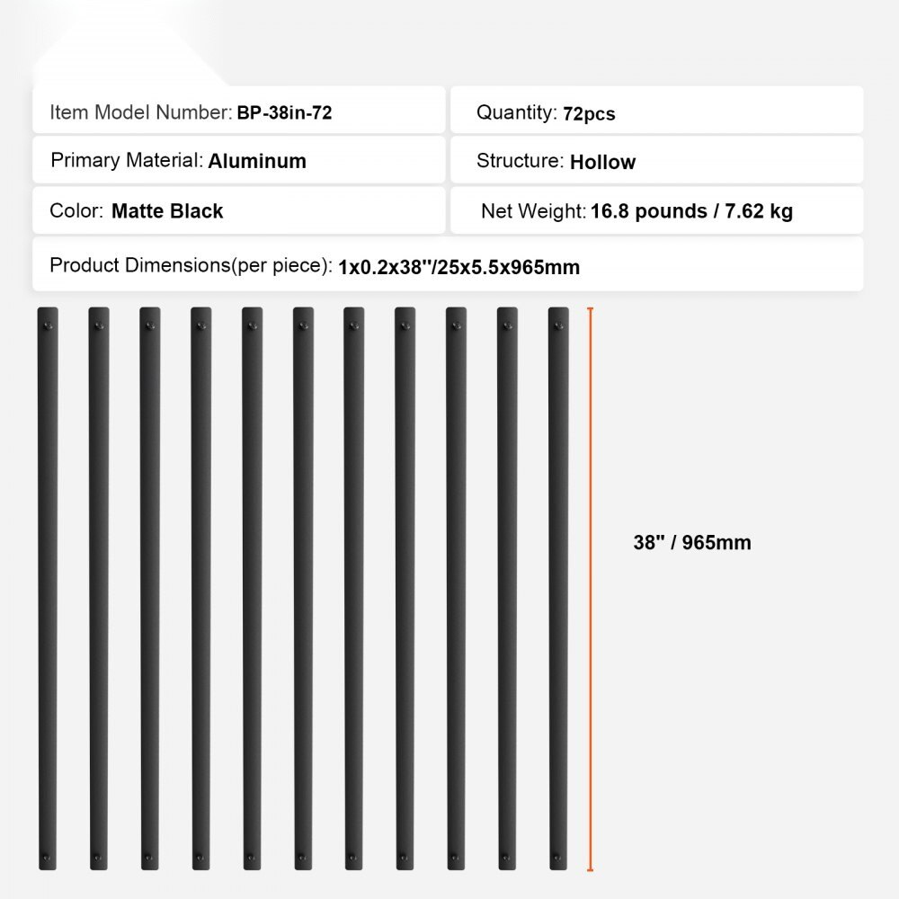 Set 72 stalpi pentru balustrada, lungime 96.5 cm, din aluminiu, negru, ideal pentru terasa, scari sau balcon
