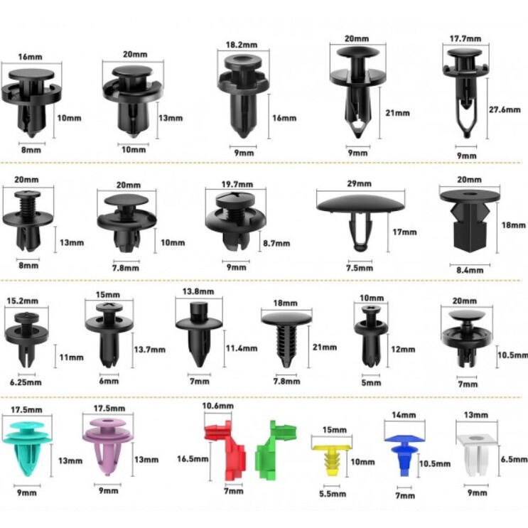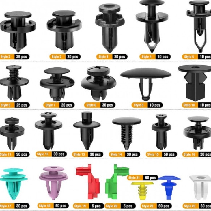 Set 725 clipsuri/ cleme auto de fixare, 18 dimensiuni, universale, plastic