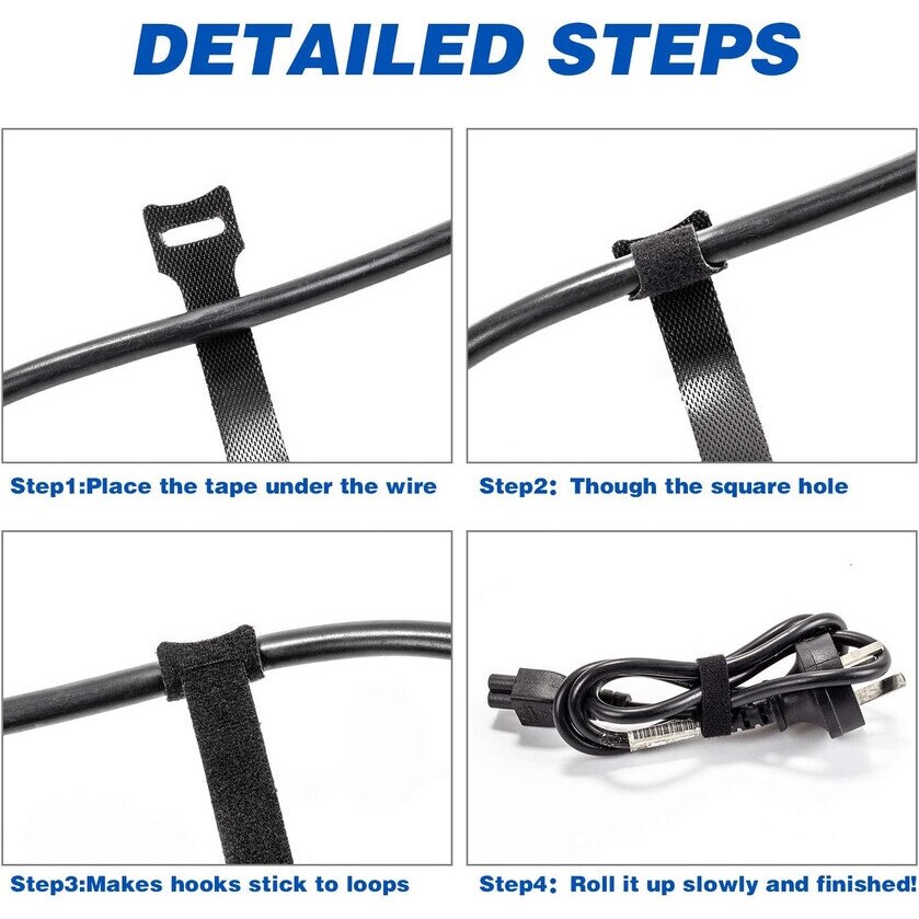 Set 80 de buc de benzi velcro pentru organizare cabluri, Organizator Cabluri reglabil si reutilizabil, cu carlig si bucla, adeziv puternic, Ajustabile, usor de utilizat, potrivit pentru articole de fixare acasa si la birou, 12x150mm