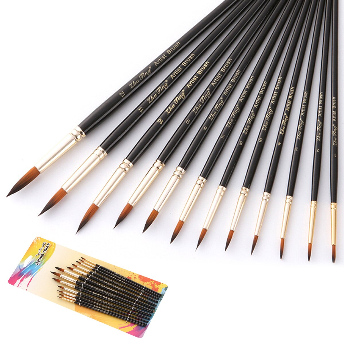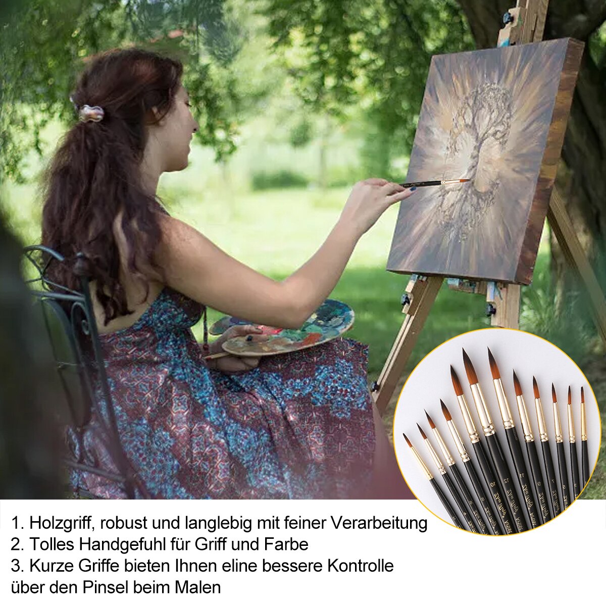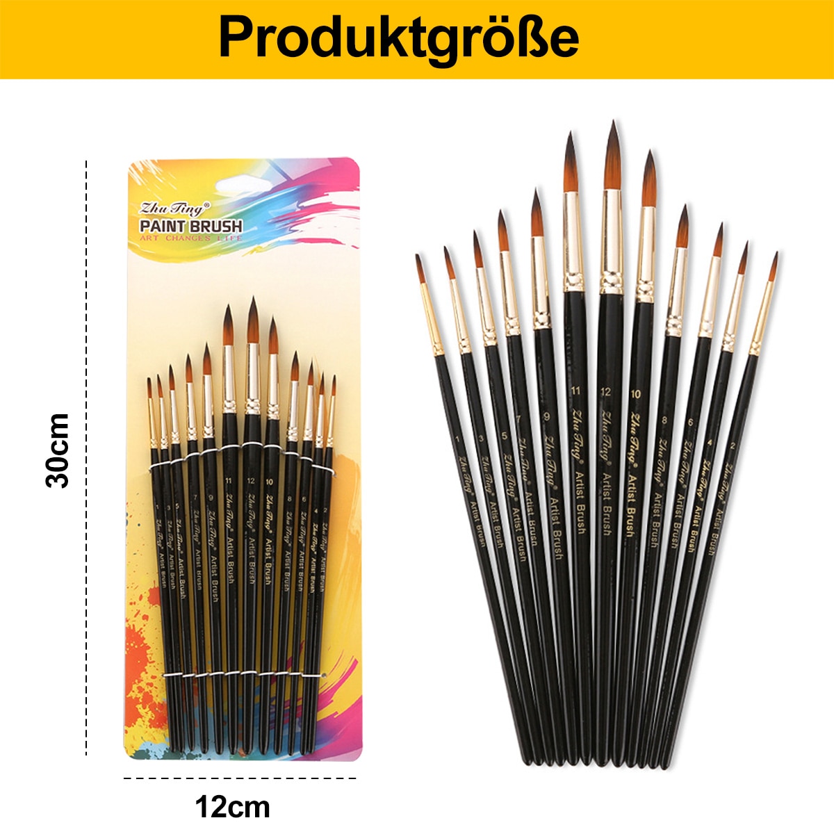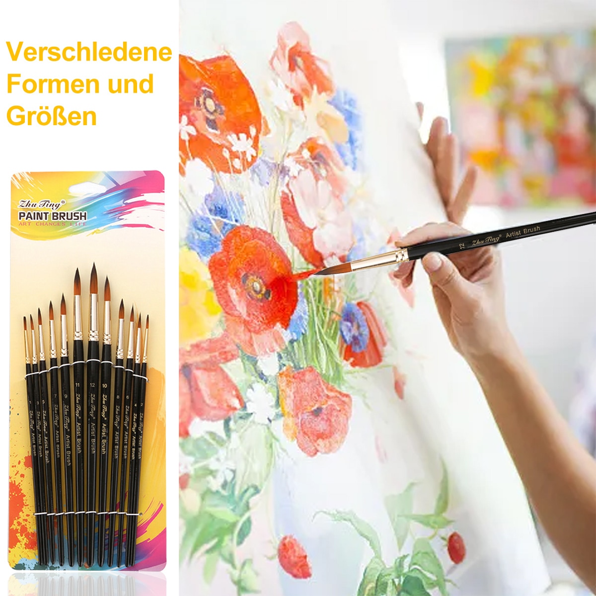 Set 9 pensule pentru pictura, sintetic, pentru acuarela, acrilic, ulei