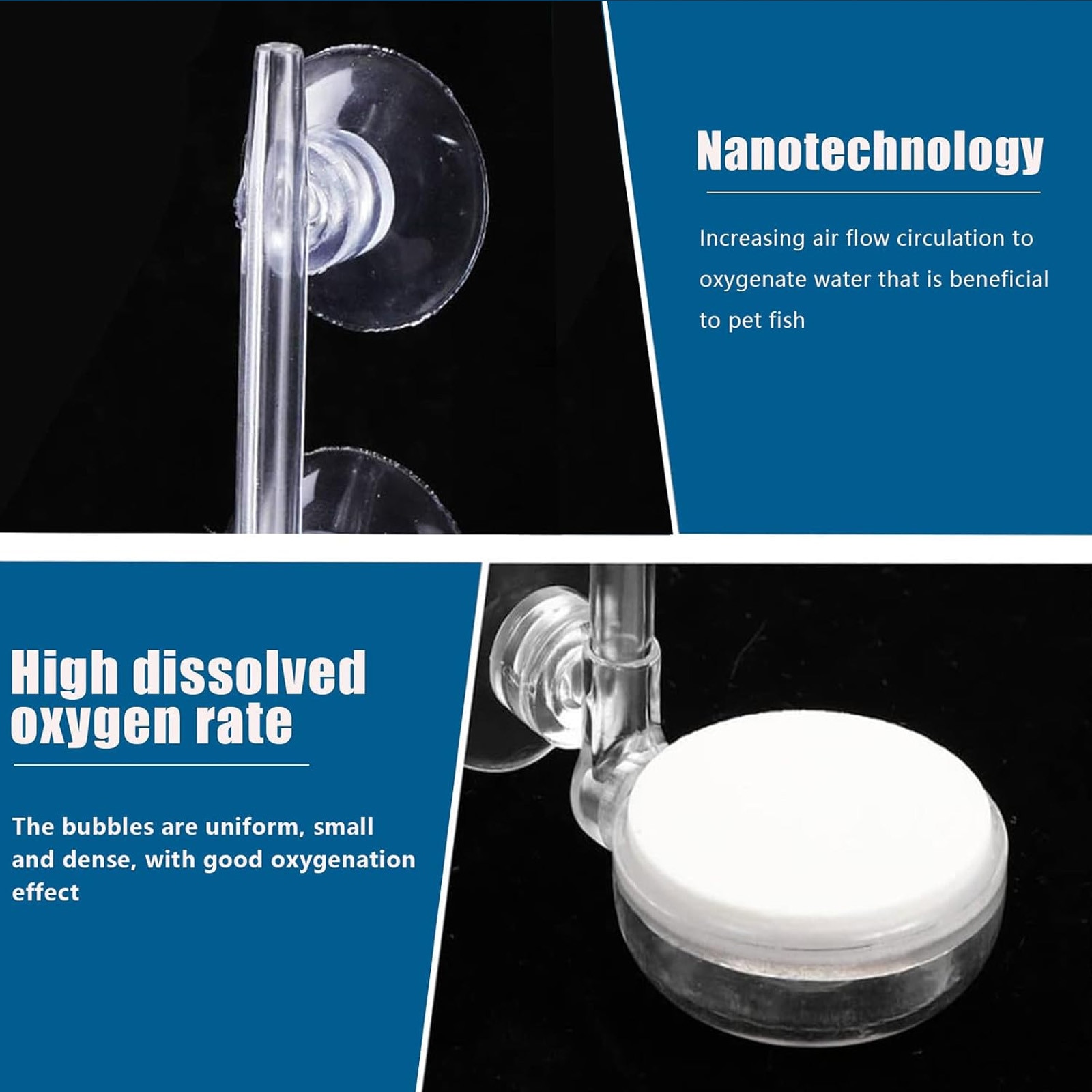 Set accesorii oxigenare acvariu, Axroad Mall, Piatra de aer pentru acvariu, Aerare cu piatra de aer acvariu sub forma de disc, 80mm diametru, cu ventuza, Silentios si compact, Oxigenare, Eficienta cu Bule Fine pentru Pesti Sanatosi, 72.5x50x13.2 mm, Al