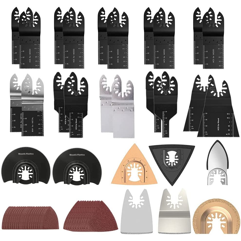 Set accesorii pentru masina multifunctionala oscilanta, taiere metal, lemn, plastic, accesorii multiunealta, 105 piese pentru Fein, Bosch, Makita, Dewalt