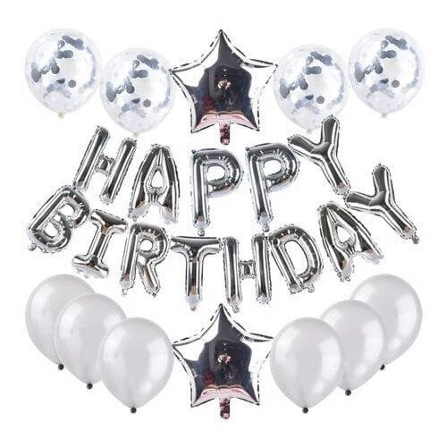 Set aniversar de baloane Happy Birthday Argintiu, Domi Party & Gifts, baloane folie si latex