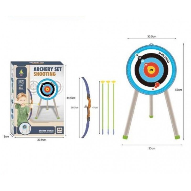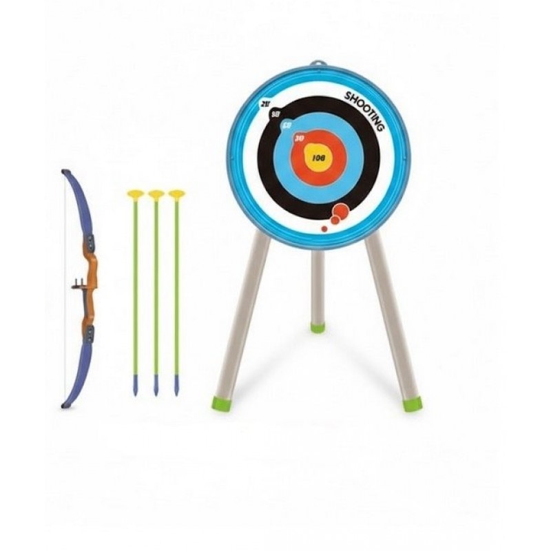 Set arc cu săgeți și țintă pentru copii, 1 arc, 1 țintă, 3 săgeți, dimensiuni țintă: 33x53x30.5cm, lungime săgeți: 47cm, lungime arc: 58.5cm