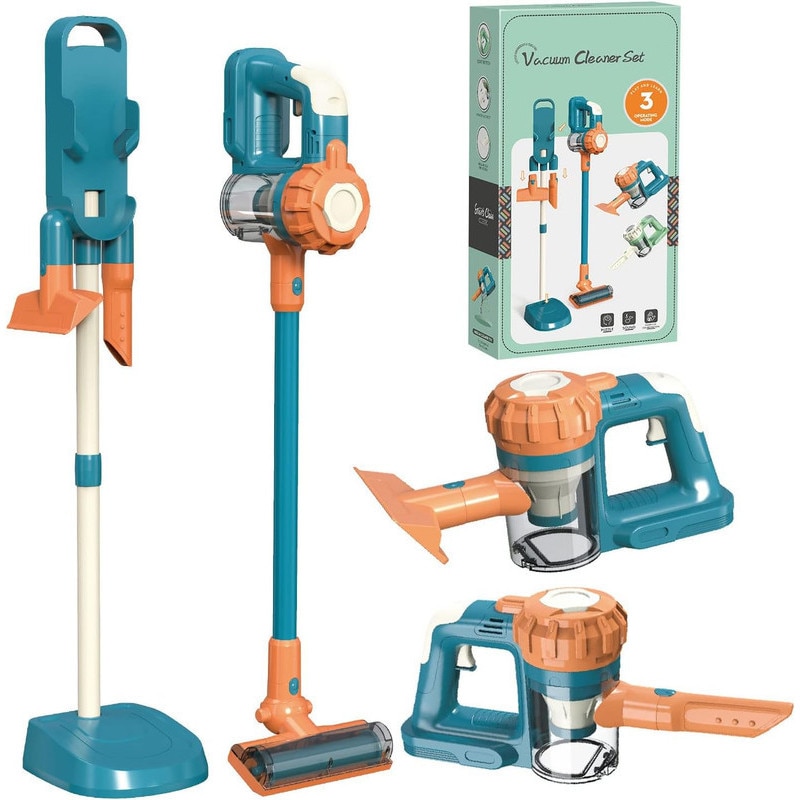 Set aspirator jucarie 3 in 1, albastru/portocaliu, 90x18.5x16.5cm, pentru copii de 3 ani si peste