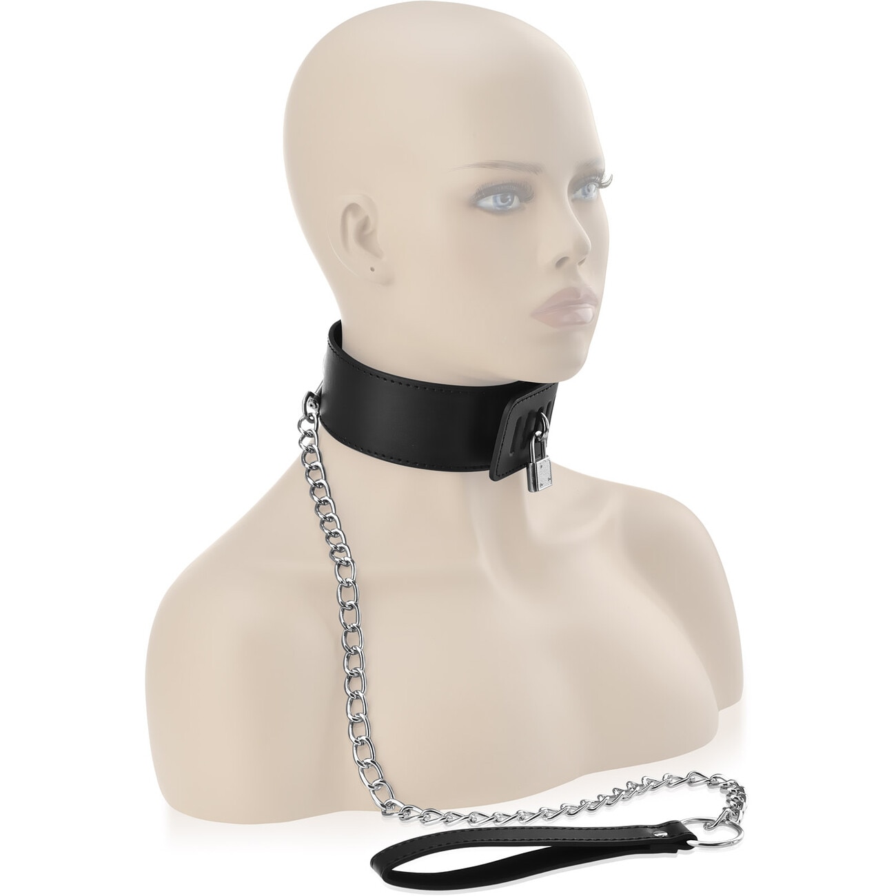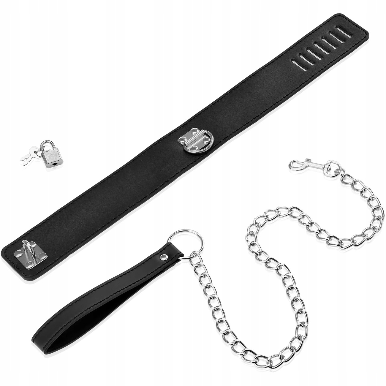 Set BDSM, Love69Toys, zgarda cu lacat si lesa, piele ecologica, negru, 45cm x 78cm