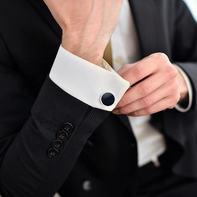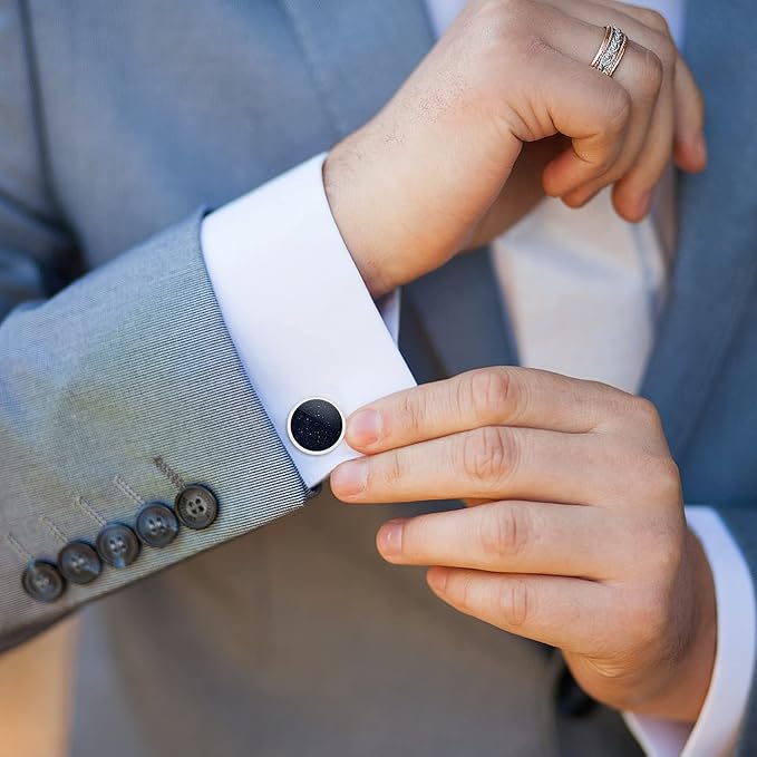 Set butoni camasa, JENUOS®, rotunzi, de lux, 17mm, aspect elegant, pentru nunti, ocazii speciale, zile de nastere, aniversari, parteneriate de afaceri, craciun, Argintiu/Negru