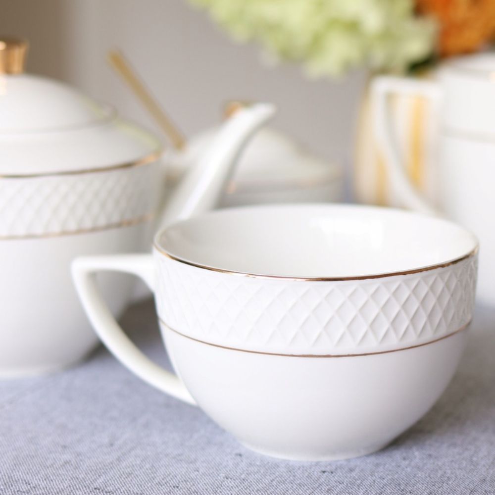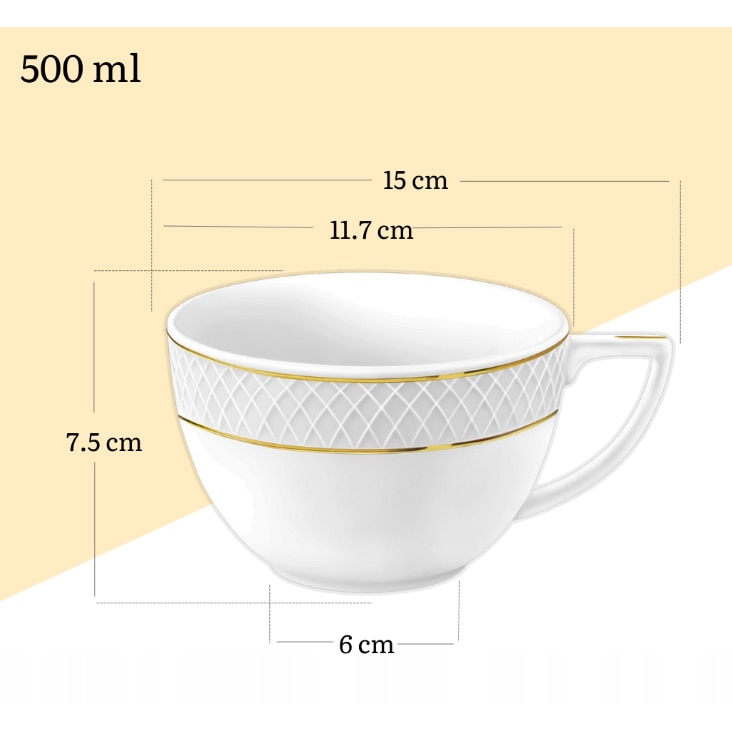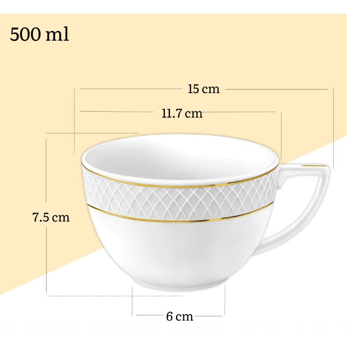 Set Cani/cesti cafea lux, mare, portelan, margine aurie, 6 piese, 500 ml, pentru ceai, cafea, Wilmax England