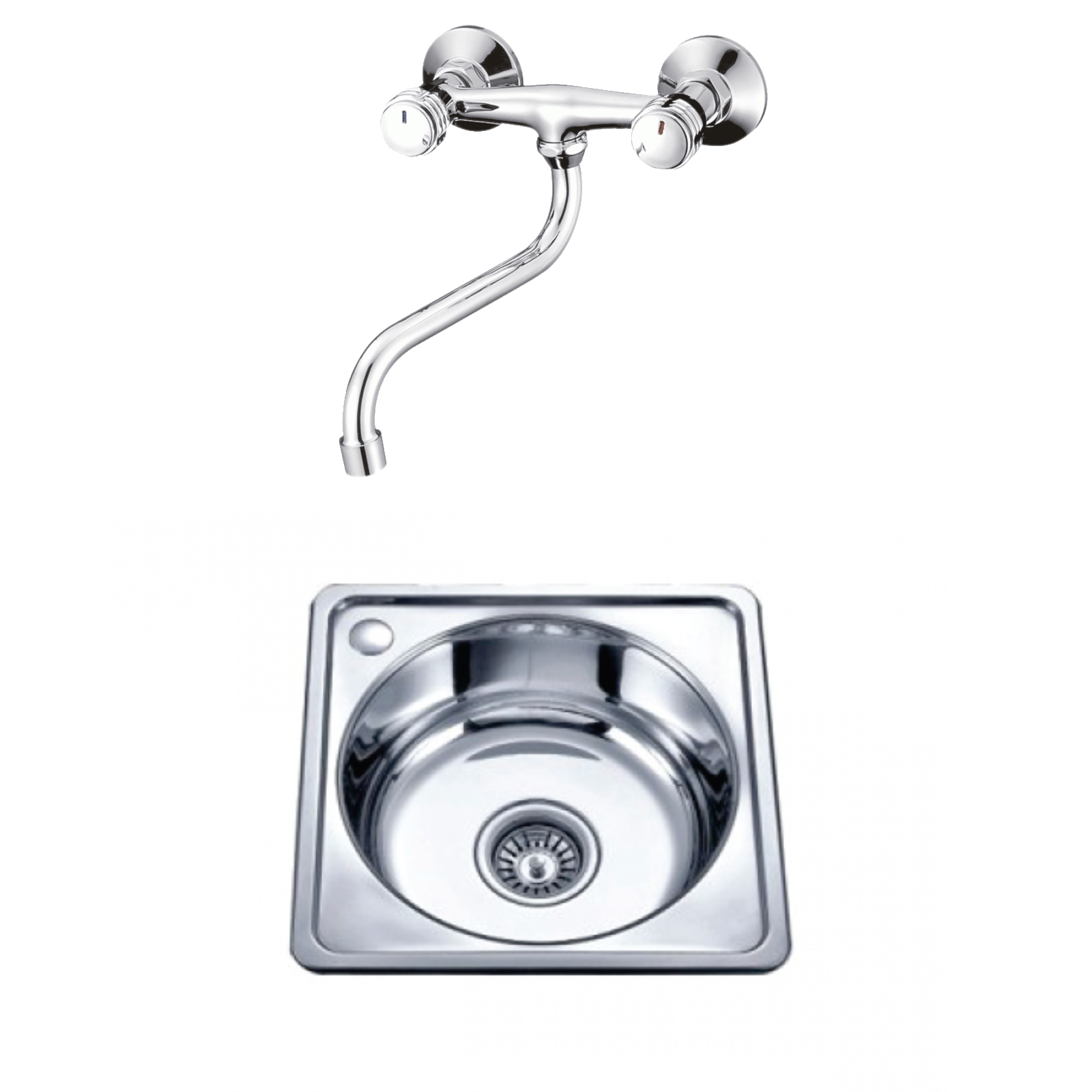 Set chiuveta de bucatarie, Inter Ceramic, 40 x 40 cm, 2 piese, Crom