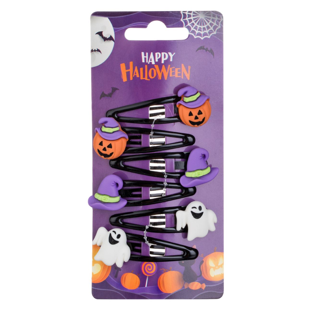 Set clame metalice par negre cu fantoma palarie vrajitoare dovleac 5cm - 6buc