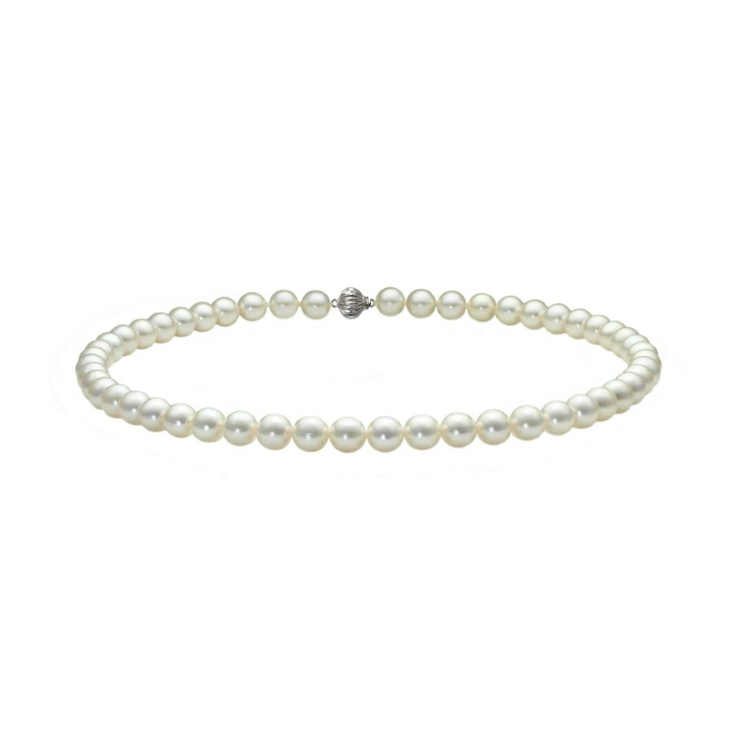 Set Colier si Bratara Perle Naturale Akoya, de 5,5 - 6 mm, cu Inchizatori Sferice din Aur Alb de 14 karate, Kaskadda
