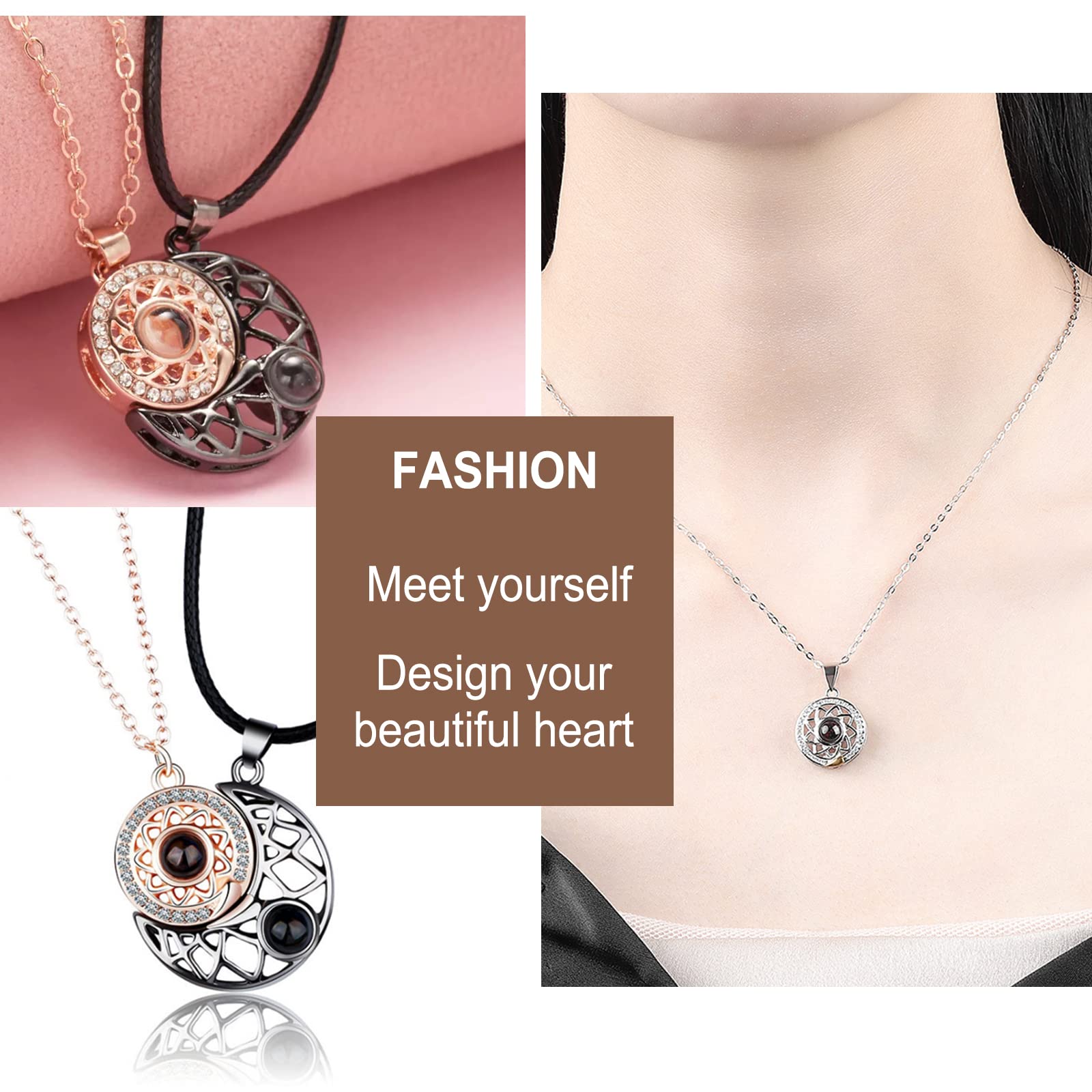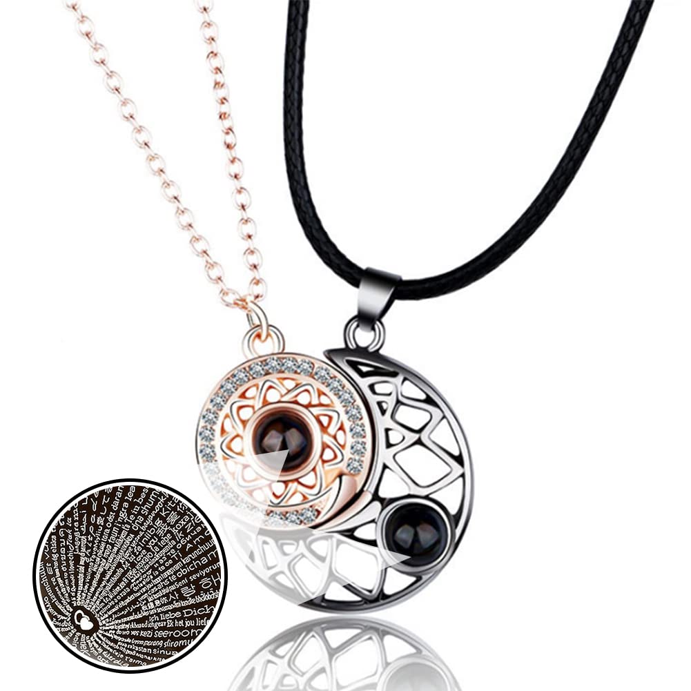 Set coliere cu pandantive prietenie, magnetice, "Te iubesc" in 100 de limbi, argintiu cu aur roz, 42+5cm|50cm