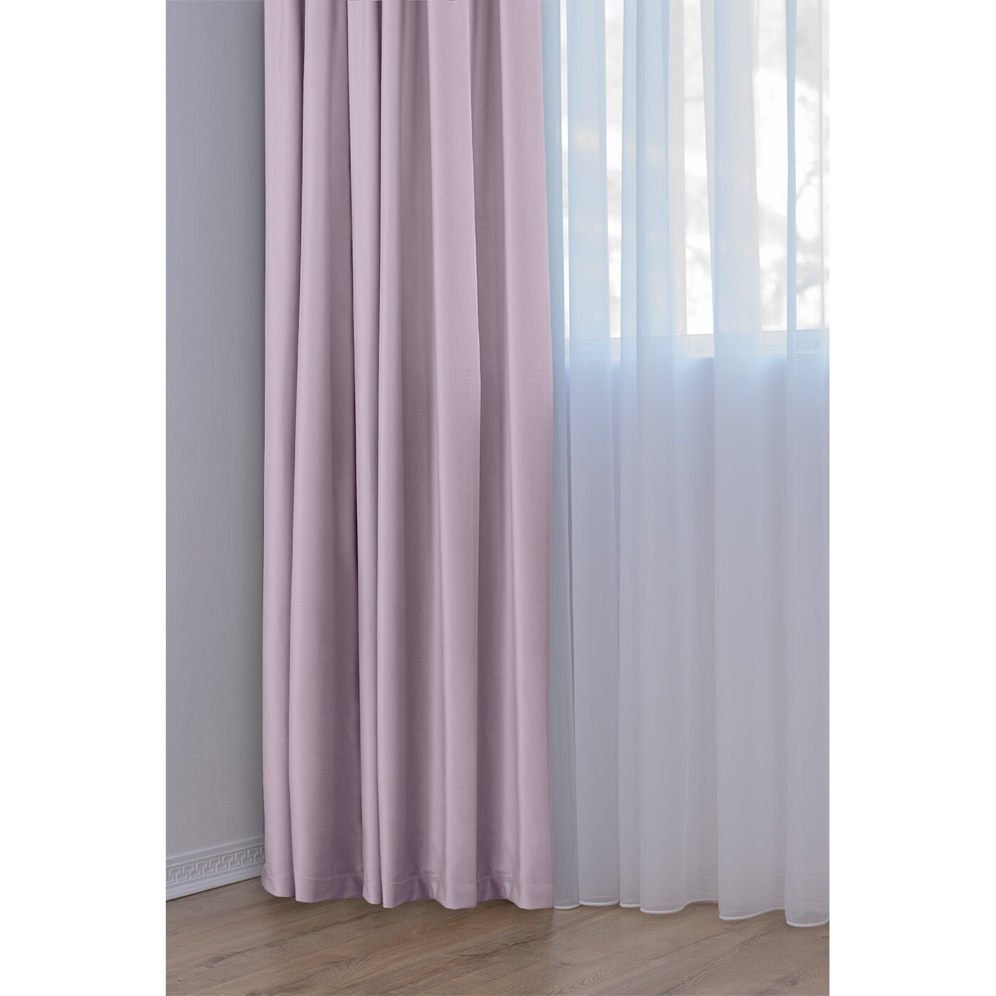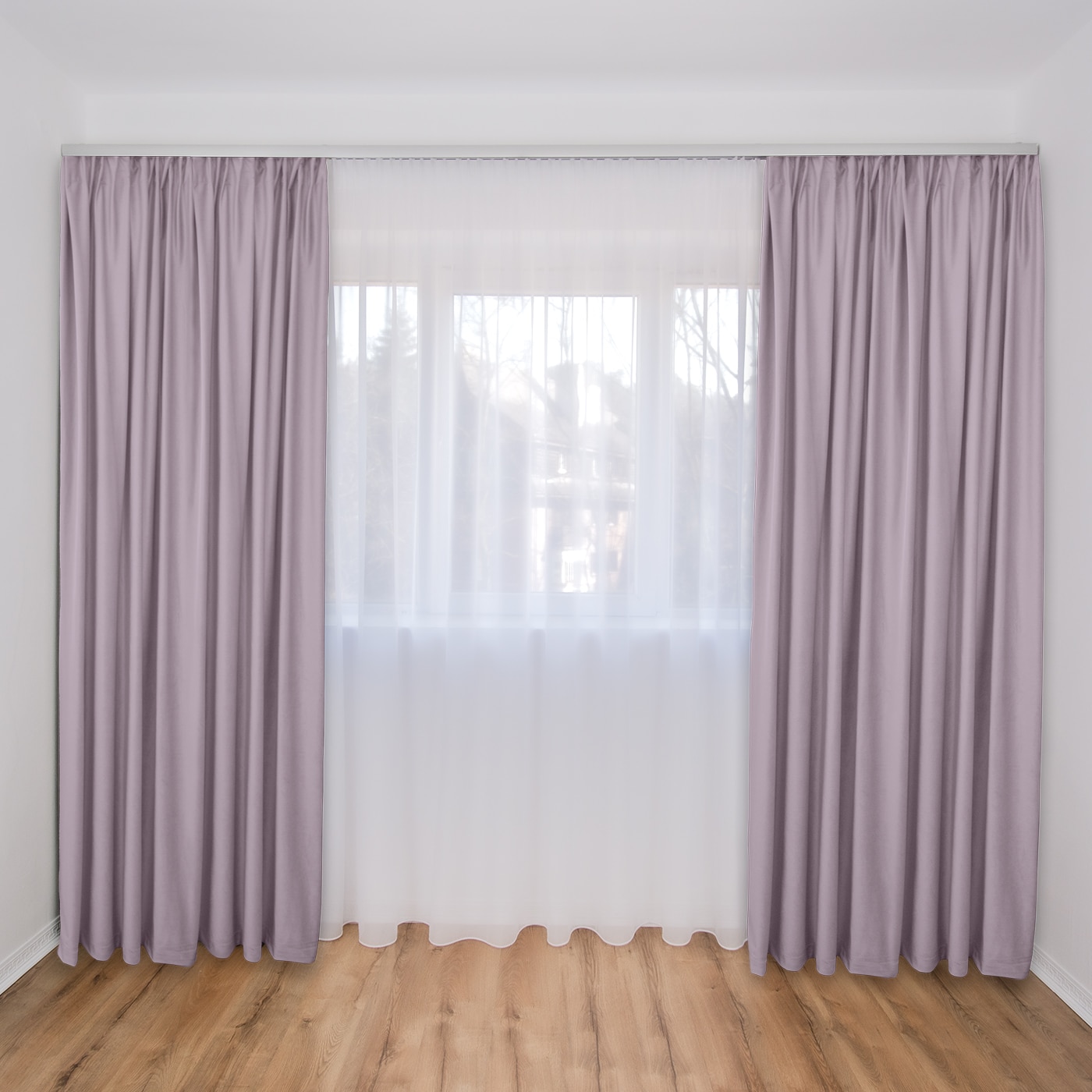 Set Complet Decolis, Draperie Catifea Mov Lila 2 buc x 175 cm, cu Perdea Triplu Voal Alb 1 buc x 400 cm, H-250 cm