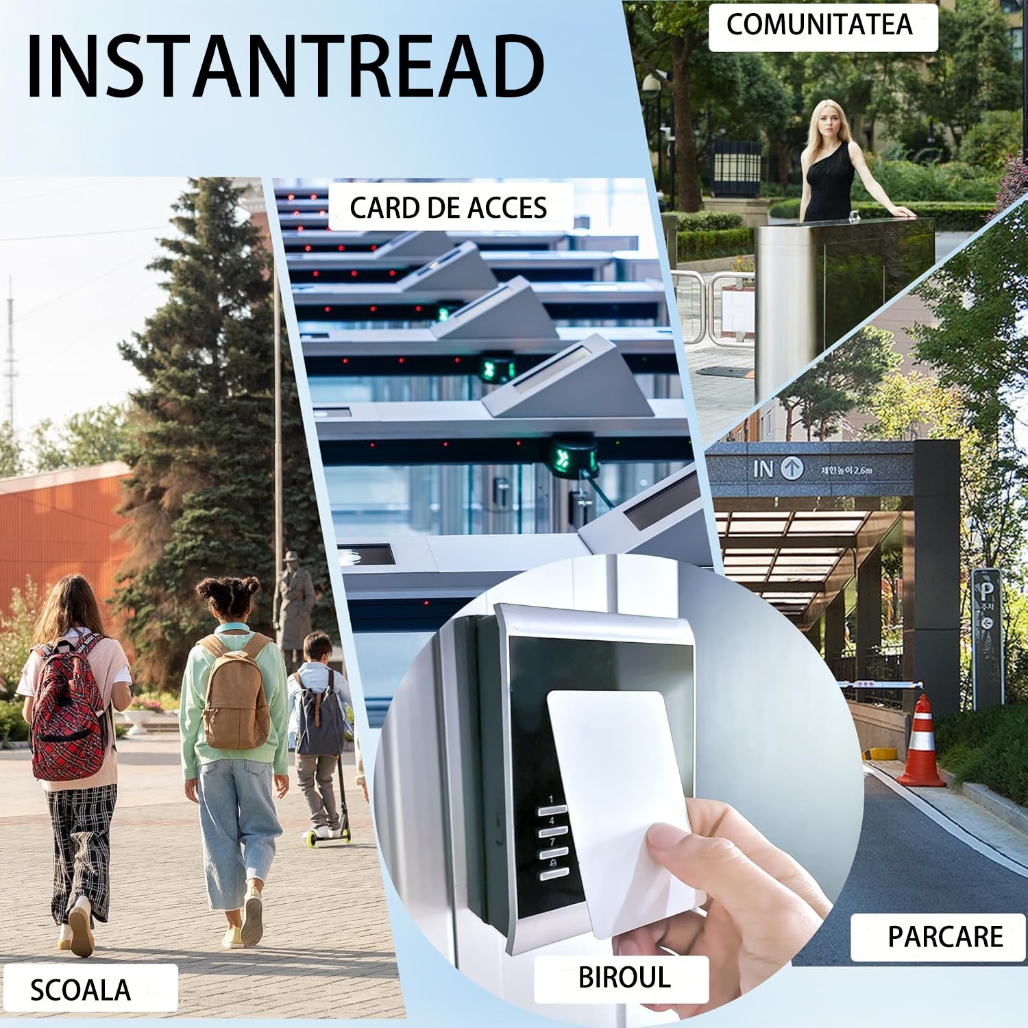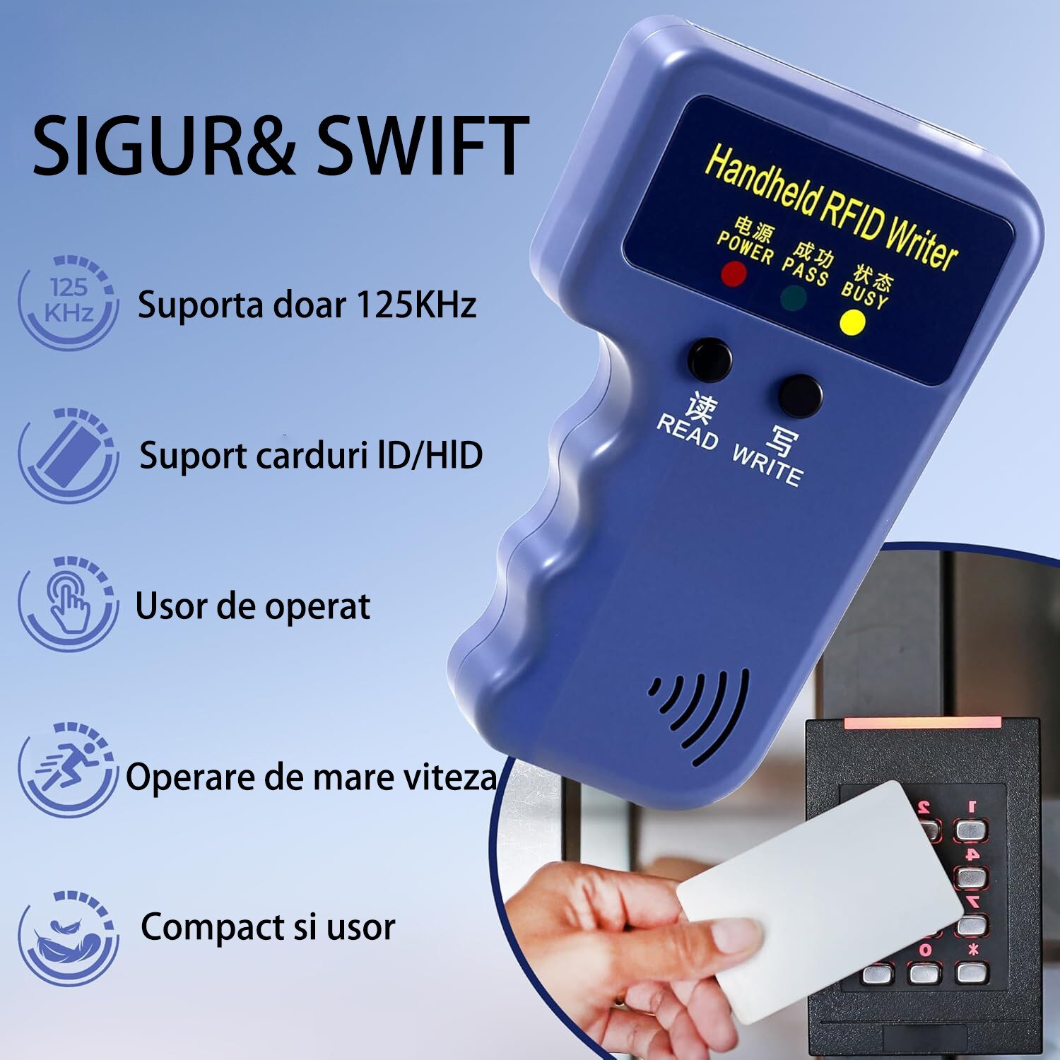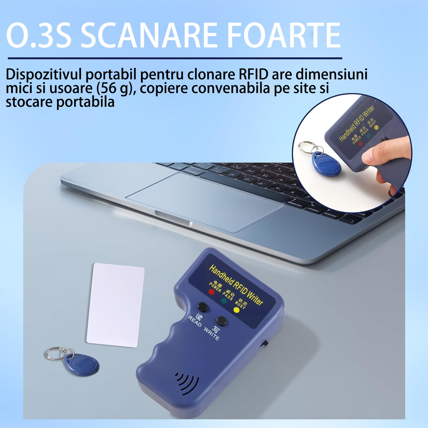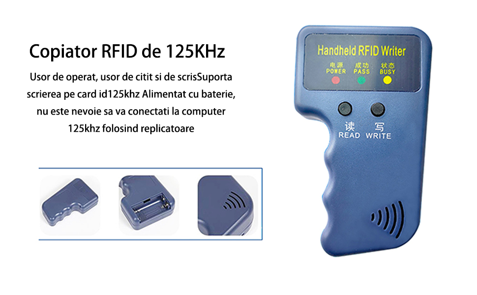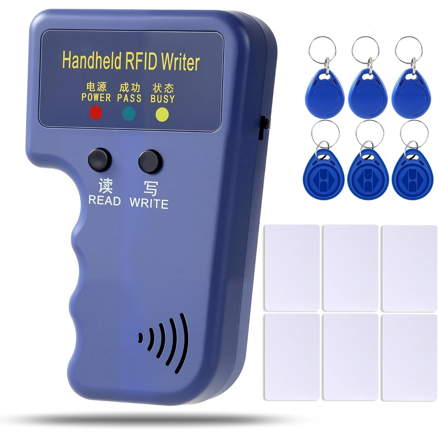 Set copiator carduri RFID, cu 6 brelocuri si 6 carduri albe, 125KHz, Usor de utilizat, pentru copierea cardurilor de parcare, a ecusoanelor de acces, OUYLAF, albastru