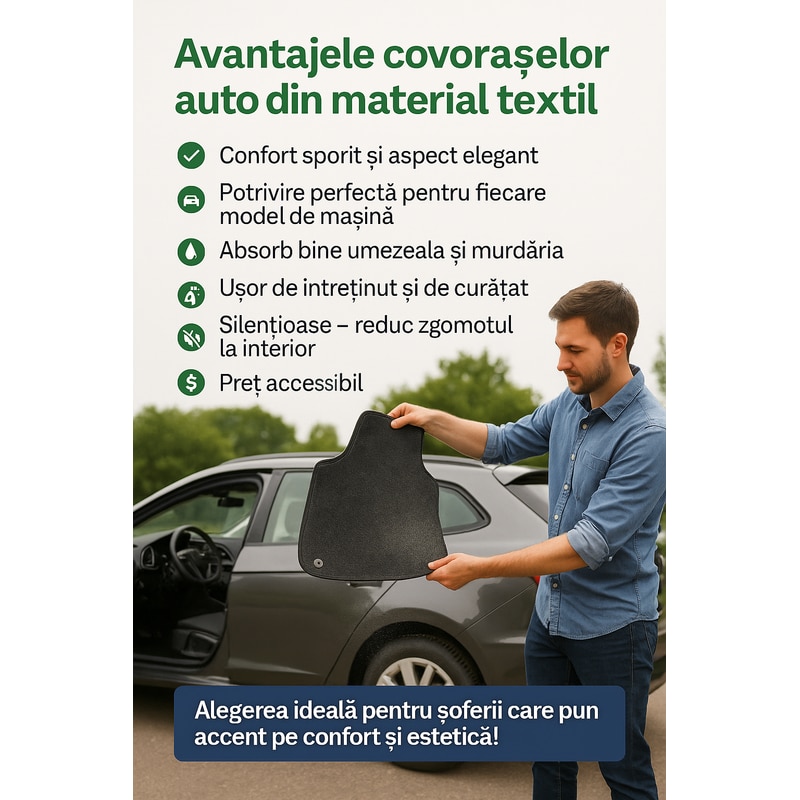 Set covorase auto textile Volvo XC90 (1) P28, 2002-2014, din mocheta, compatibile cu autoturismul Volvo XC90 (1) P28