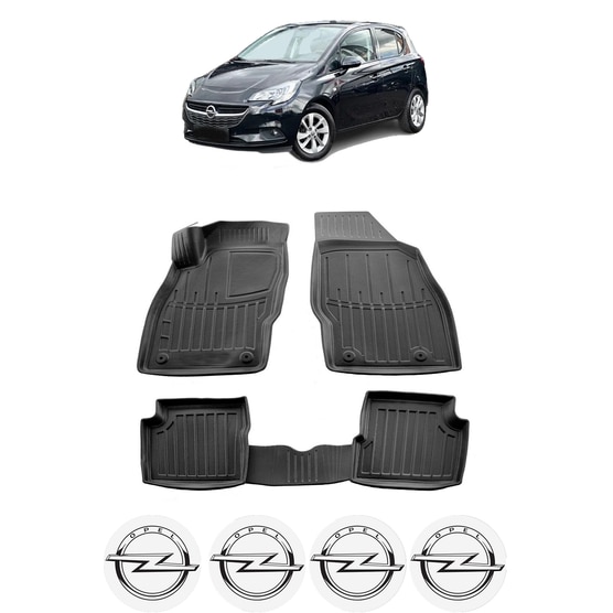 Set covorase presuri OPEL CORSA E din 2014-2019, auto, CRI-FLO, din cauciuc thermoplastic, 4 Stickere auto cu OPEL