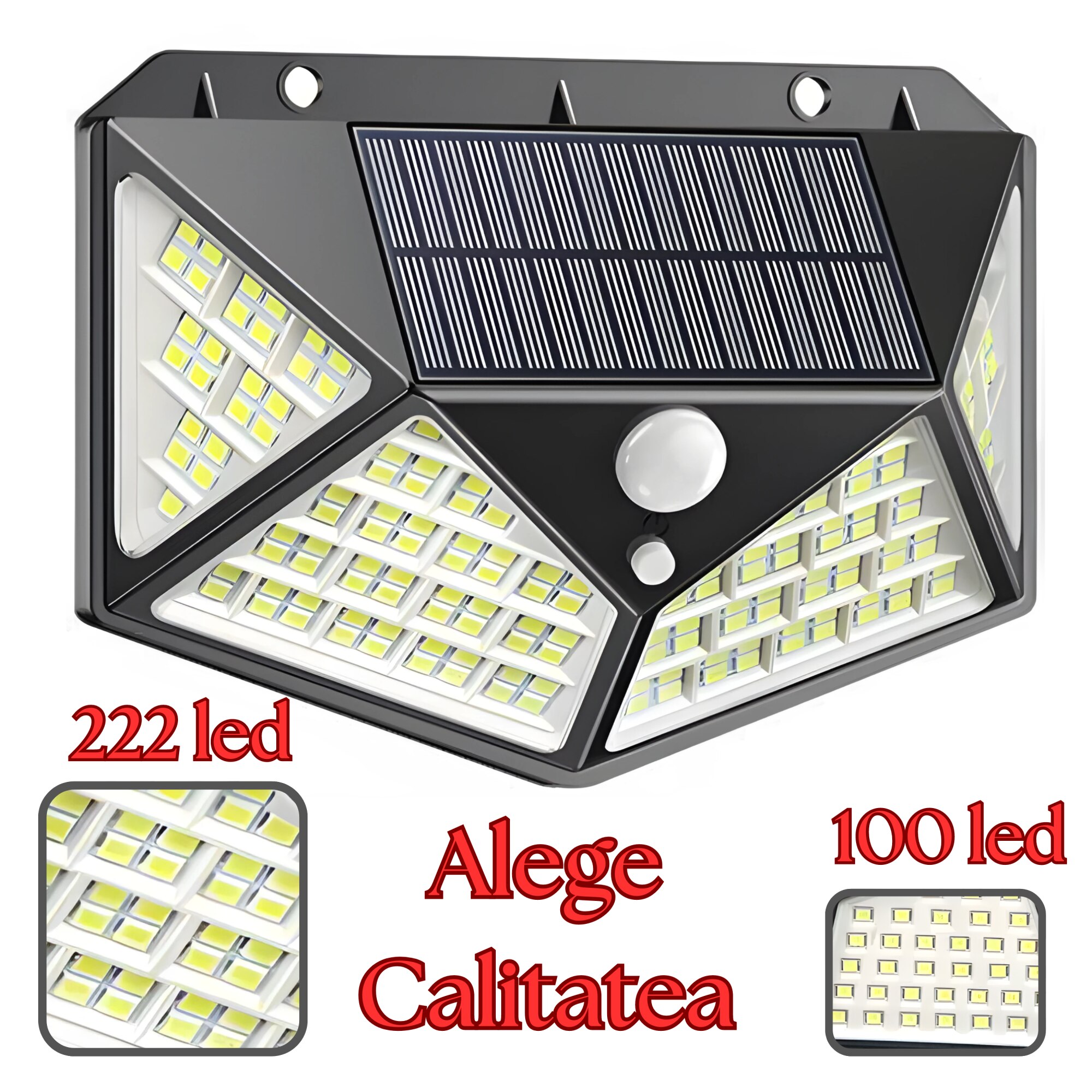 Set Cu 10 Lampi Solare Puternice de Calitate APF 222 Led cu Senzor De Miscare / Iluminare Raza Mare, Panou Solar si Baterie Reincarcabila