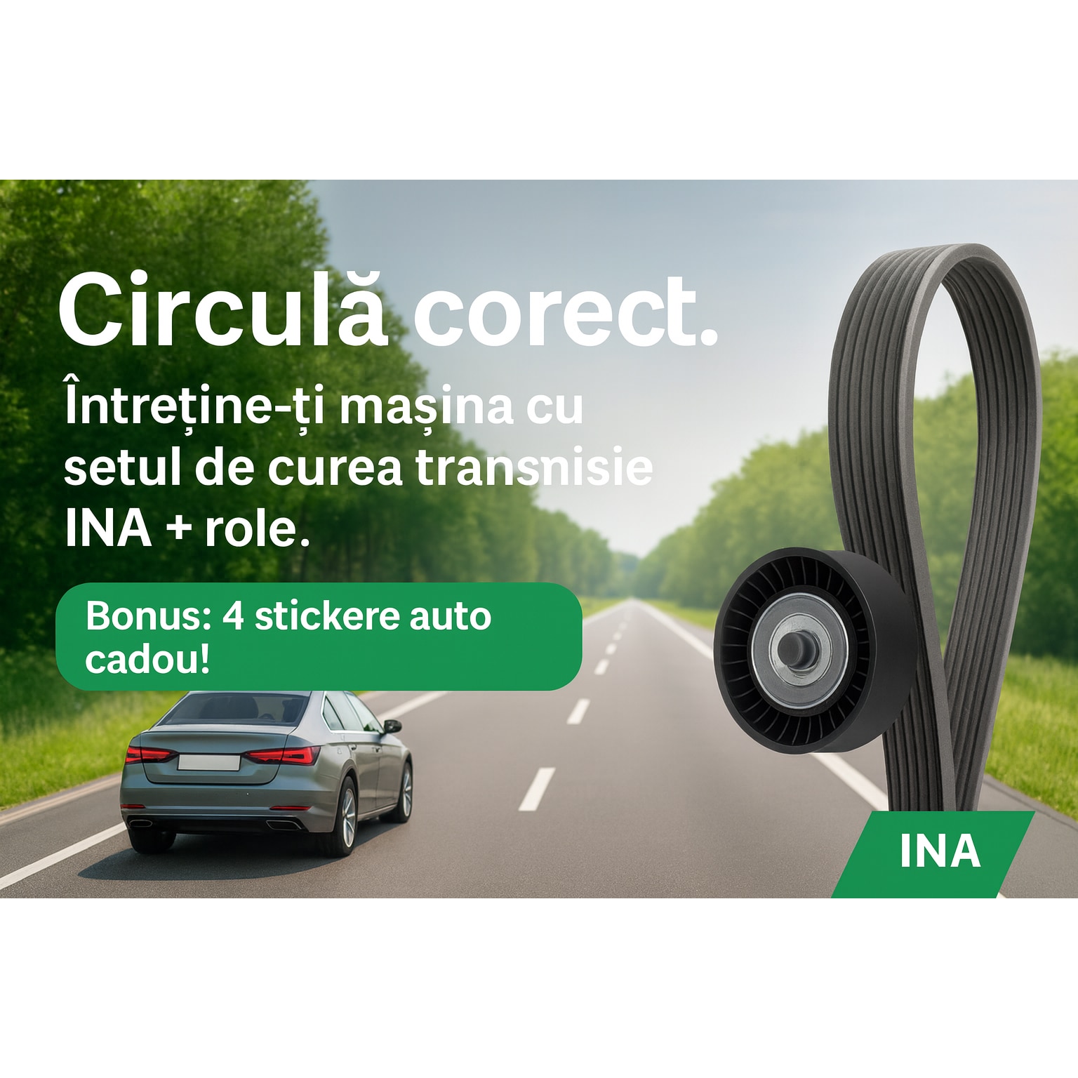 | Continut pachet | 4x Stickere auto 1x Set curea transmisie cu caneluri |