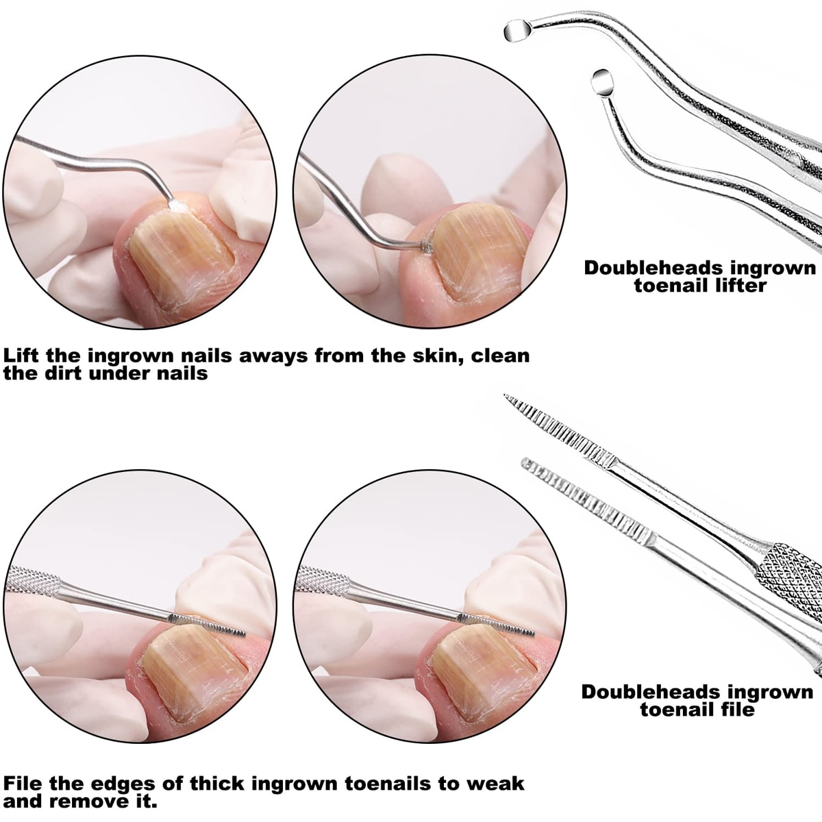 1.Unelte pentru unghii incarnate--Aceste instrumente de pedichiura pentru unghiile incarnate sunt fabricate din otel inoxidabil de calitate chirurgicala. Setul pentru unghiile incarnate de la picior este o productie excelenta, care va ajuta sa nu mai suferiti durerea cauzata de unghiile incarnate; va ofera o solutie utila acasa pentru a gestiona dispozitivul de indepartare a unghiilor incarnate si pentru a trata delicat zonele sensibile. parte incarnata departe de piele. Nu doar un lifter, ci si un uimitor de curatat unghii. Capetele duble curbate sunt oglinzi atat pentru piciorul stang, cat si pentru cel drept. Cu linguri mici pe capatul curbat, care il fac sa intre chiar si sub cea mai apropiata unghie pentru a prinde chiar si cele mai mici bucati de resturi.; 3. Pila pentru unghii incarnate - Aceasta pila special conceputa amelioreaza presiunea unghiei incarnate, cu un capat drept si un capat curbat, capat drept pentru limarea marginii exterioare a unghiilor sau a suprafetei curbate ale unghiei. ; 4.Usor de utilizat - In primul rand, utilizati dispozitivul nostru de ridicare a unghiilor incarnate pentru a prinde resturile sau murdaria din interiorul unghiei, apoi utilizati dispozitivul de taiere a unghiilor incarnate pentru a taia unghia. In cele din urma, folosind pila de unghii incarnate pentru a inlatura si a straluci marginile incarnate sau partile groase care se infipt in unghie. husa pentru urmatoarea utilizare.\r\n1.Unelte pentru unghii incarnate--Aceste instrumente de pedichiura pentru unghiile incarnate sunt fabricate din otel inoxidabil de calitate chirurgicala. Setul pentru unghiile incarnate de la picior este o productie excelenta, care va ajuta sa nu mai suferiti durerea cauzata de unghiile incarnate; va ofera o solutie utila acasa pentru a gestiona zonele sensibile si a elimina cu usurinta unghiile incarnate. Lifter de unghii de la picioare -- Ridicati partea incarnata departe de piele. Nu doar un lifter, ci si un uimitor de curatat unghii. Capetele duble curbate sunt oglinzi atat pentru piciorul stang, cat si pentru cel drept. Cu linguri mici pe capatul curbat, care il fac sa intre chiar si sub cea mai apropiata unghie de la picior pentru a prinde chiar si cele mai mici bucati de resturi.\r\n3. Pila pentru unghii incarnate - Aceasta pila special conceputa amelioreaza presiunea unghiei incarnate, cu un capat drept si un capat curbat, capat drept pentru limarea marginii exterioare a coltului sau a suprafetei curbate a suprafetei. unghie. \r\n 4.Usor de utilizat -- In primul rand, folositi dispozitivul nostru de ridicare a unghiilor incarnate pentru a prinde resturile sau murdaria din interiorul unghiei, apoi utilizati dispozitivul de tuns pentru unghii incarnate pentru a taia unghia. In cele din urma, folositi pila pentru unghii incarnate pentru a inlatura si a straluci marginile incarnate sau partile groase care se infipt in unghie.\r\n5.Setul de instrumente pentru unghii incarnate de la picior de valoare --Uneltele noastre de pedichiura pentru unghia incarnata sunt cu o punga din PVC pentru protectie, va ofera o cutie la indemana pentru a va depozita instrumentele de podologie, pastrandu-le intr-un singur loc, pentru a le curata si a pastra alcoolul. in carcasa noastra de depozitare pentru urmatoarea utilizare.