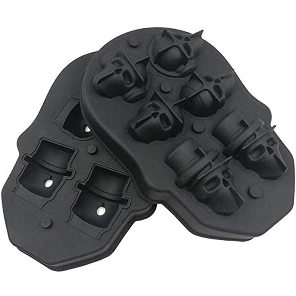 Set de 2 forme de silicon pentru ciocolata in forma de craniu, 18.2x12.7x4cm, negru