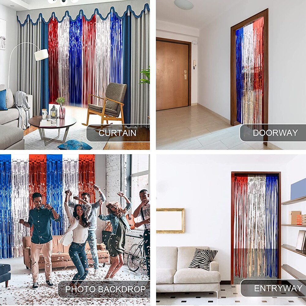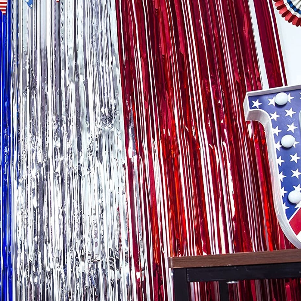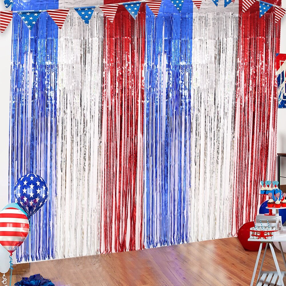 Set de 2 Perdele Decorative BGHYHYHI, Franjuri Folie, Multicolor, 100x300cm, pentru 4 Iulie