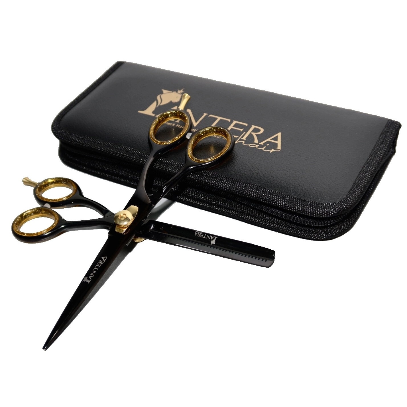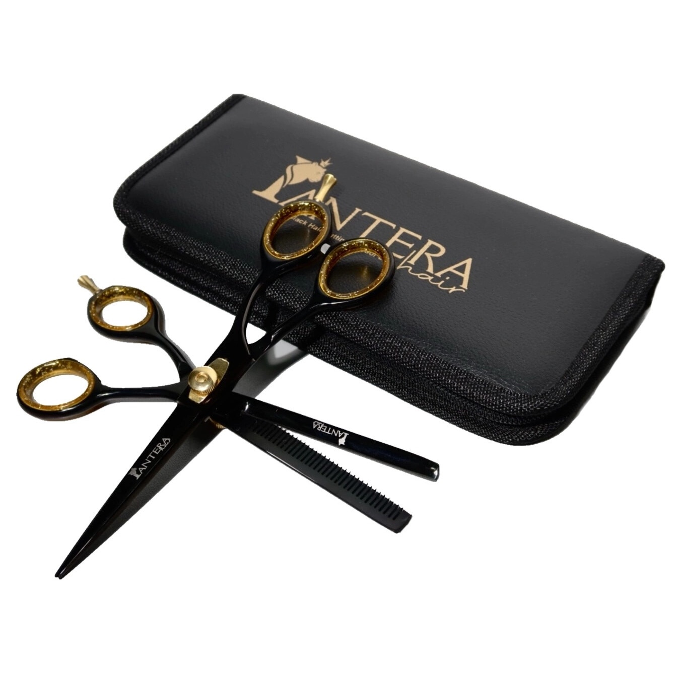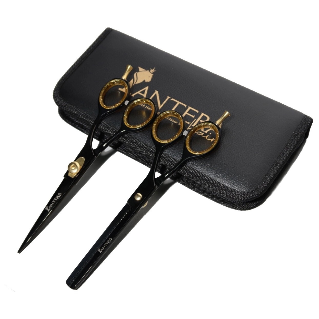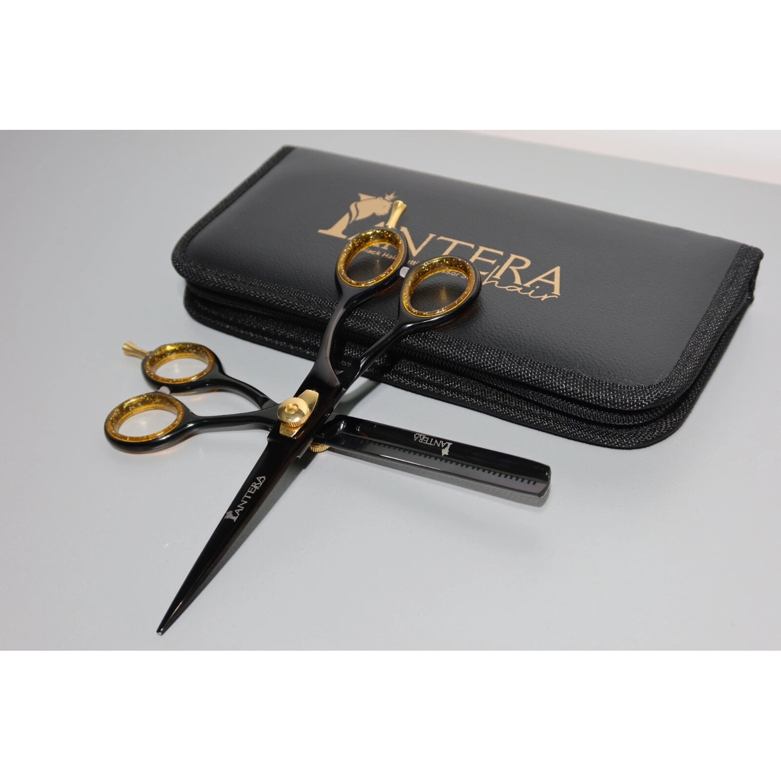 Set de 2 profesionale foarfece de tuns, Pantera Hair, otel inoxidabil, 6.5 inches, Negru/Auriu