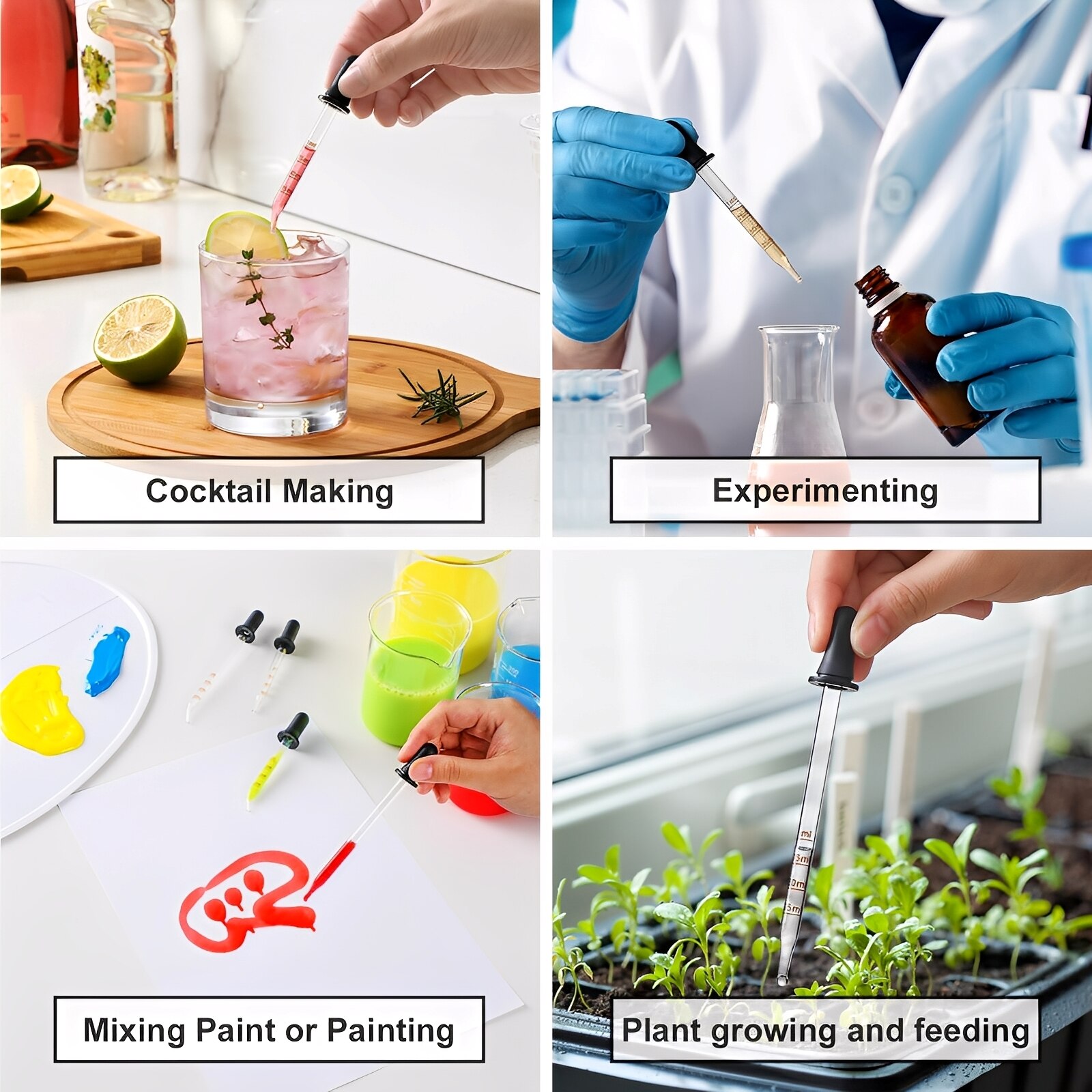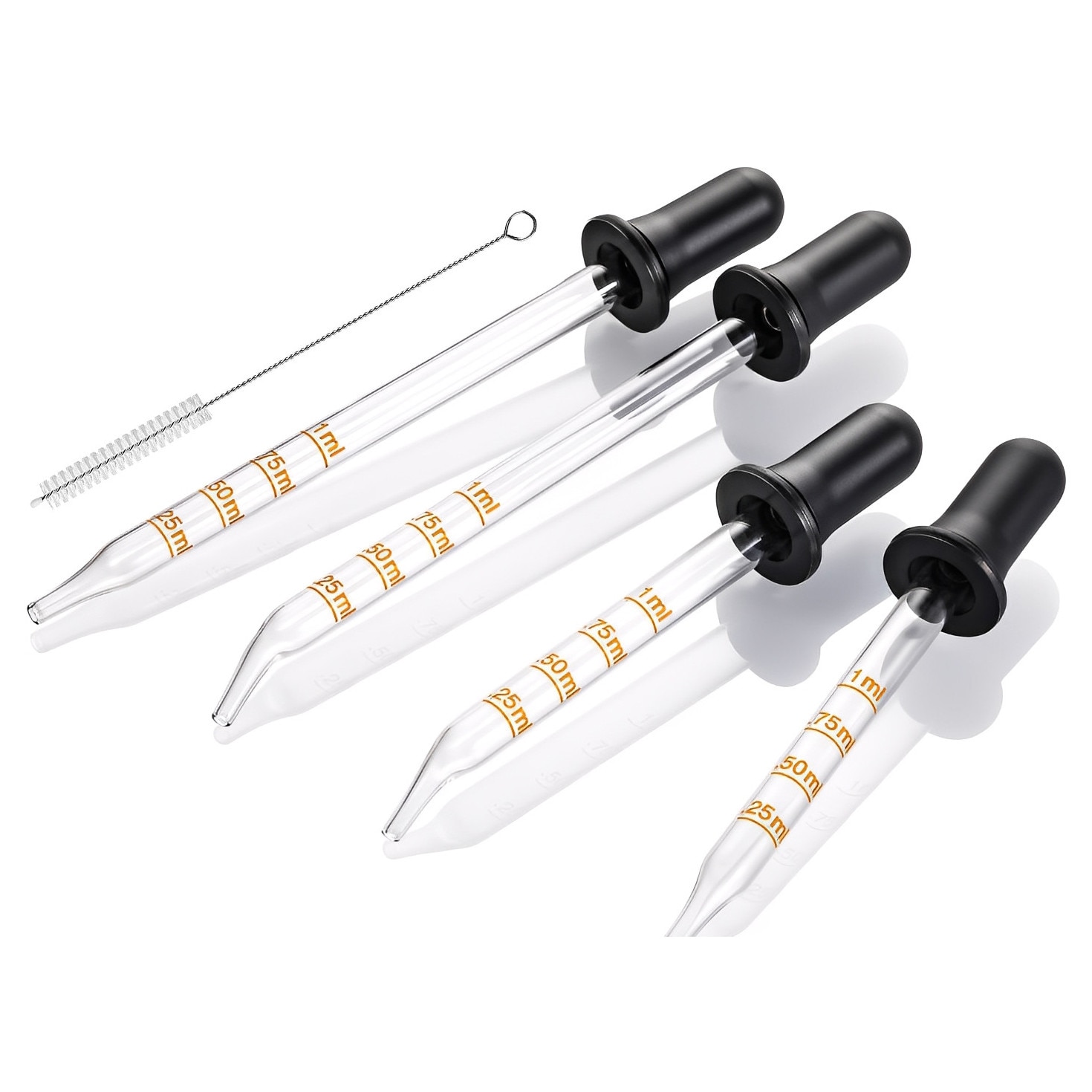 Set de 4 pipete din sticla TREXORA, rezistente la impact, cu marcaje gravate, inclusiv perie de curatare si cutie de stocare, pentru uleiuri esentiale, cosmetice, ingrijire oculara, 1mL