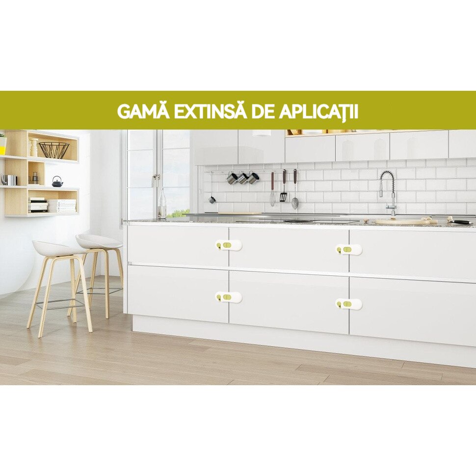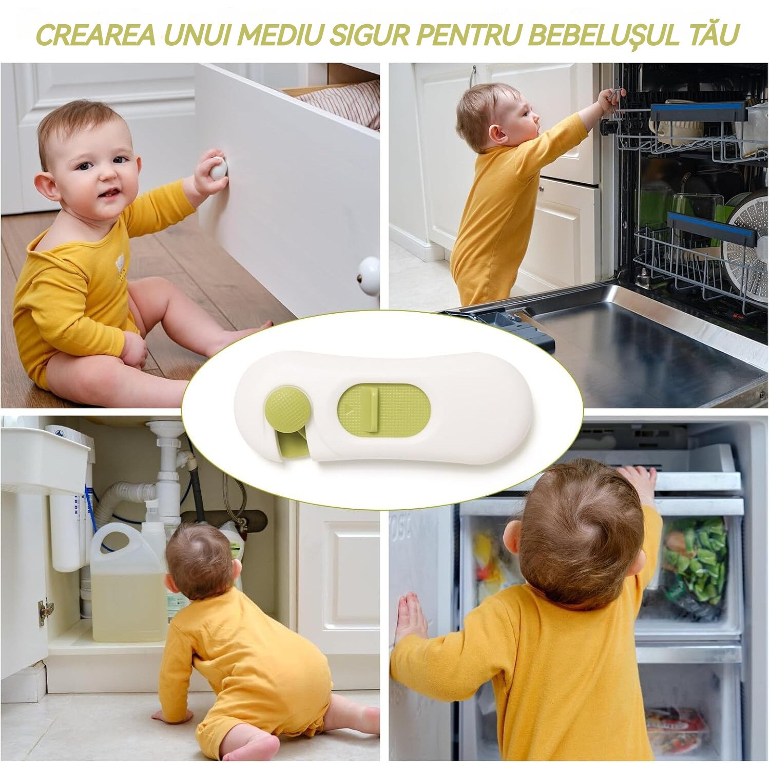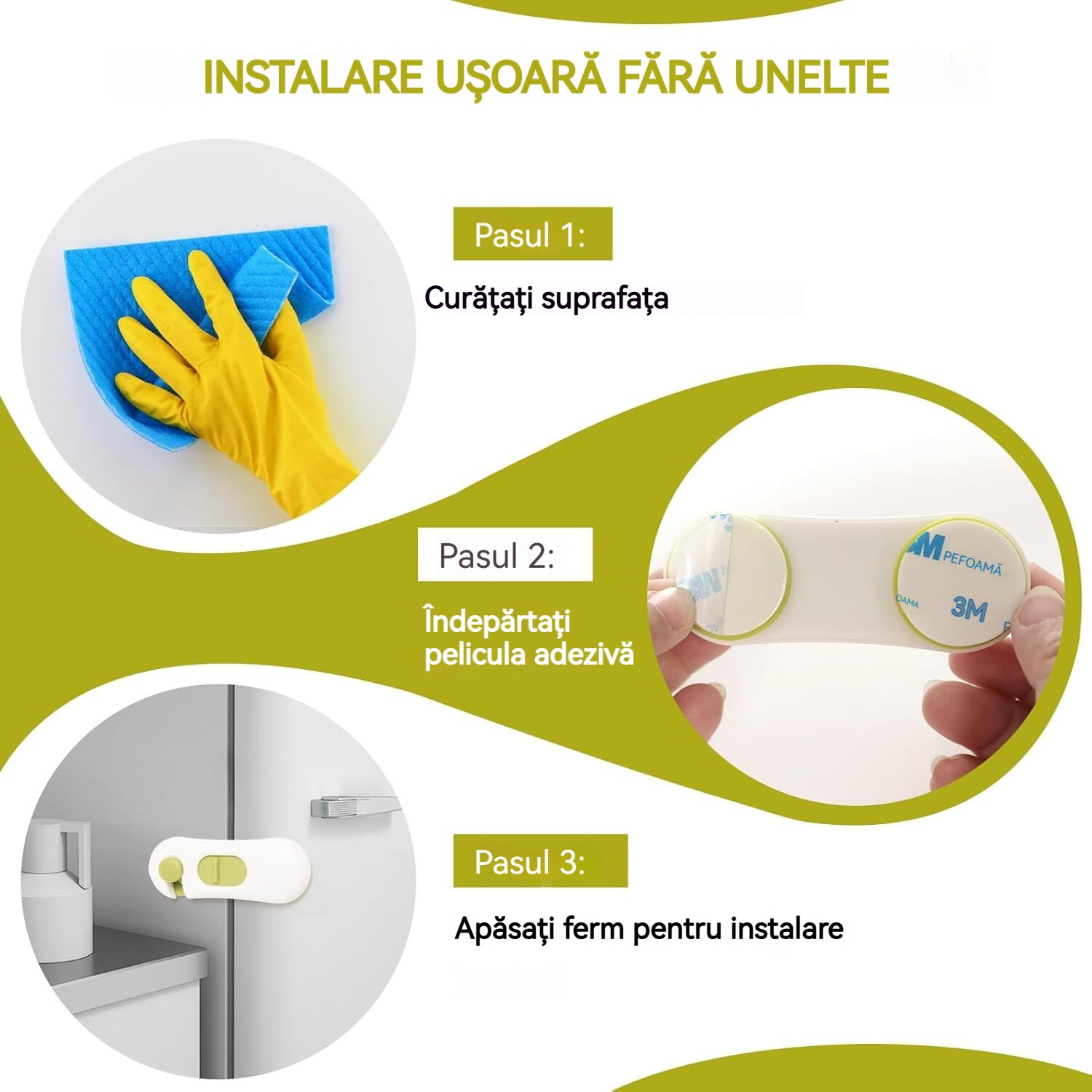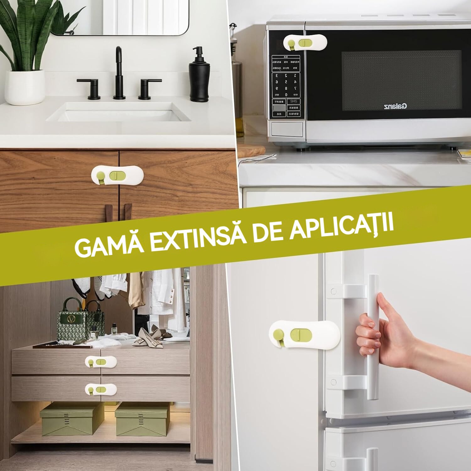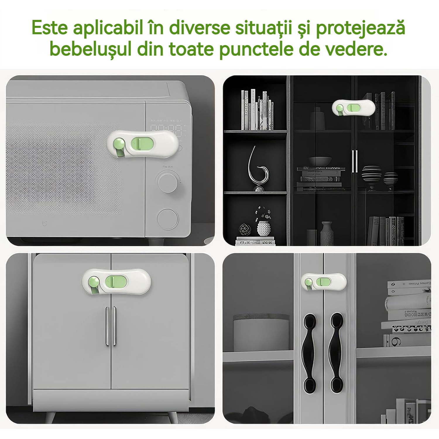 Element Esential pentru Protectia Copiilor: Previne deschiderea cabinetelor, sertarelor si altor zone interzise din jurul casei.
