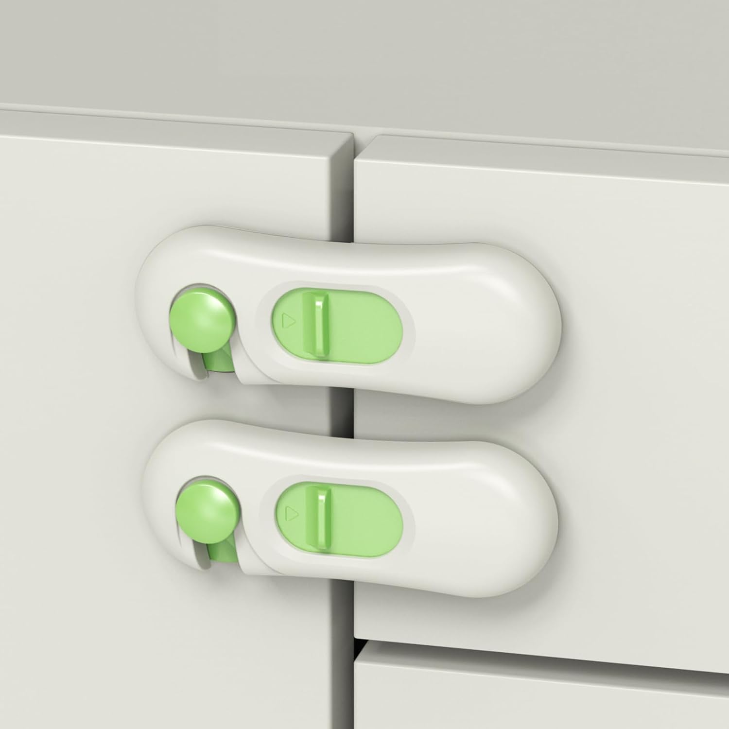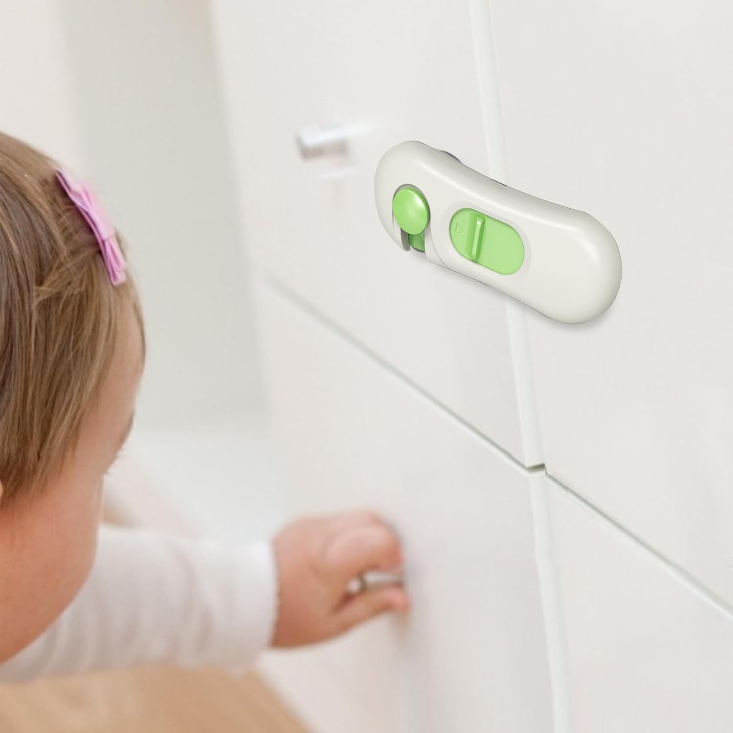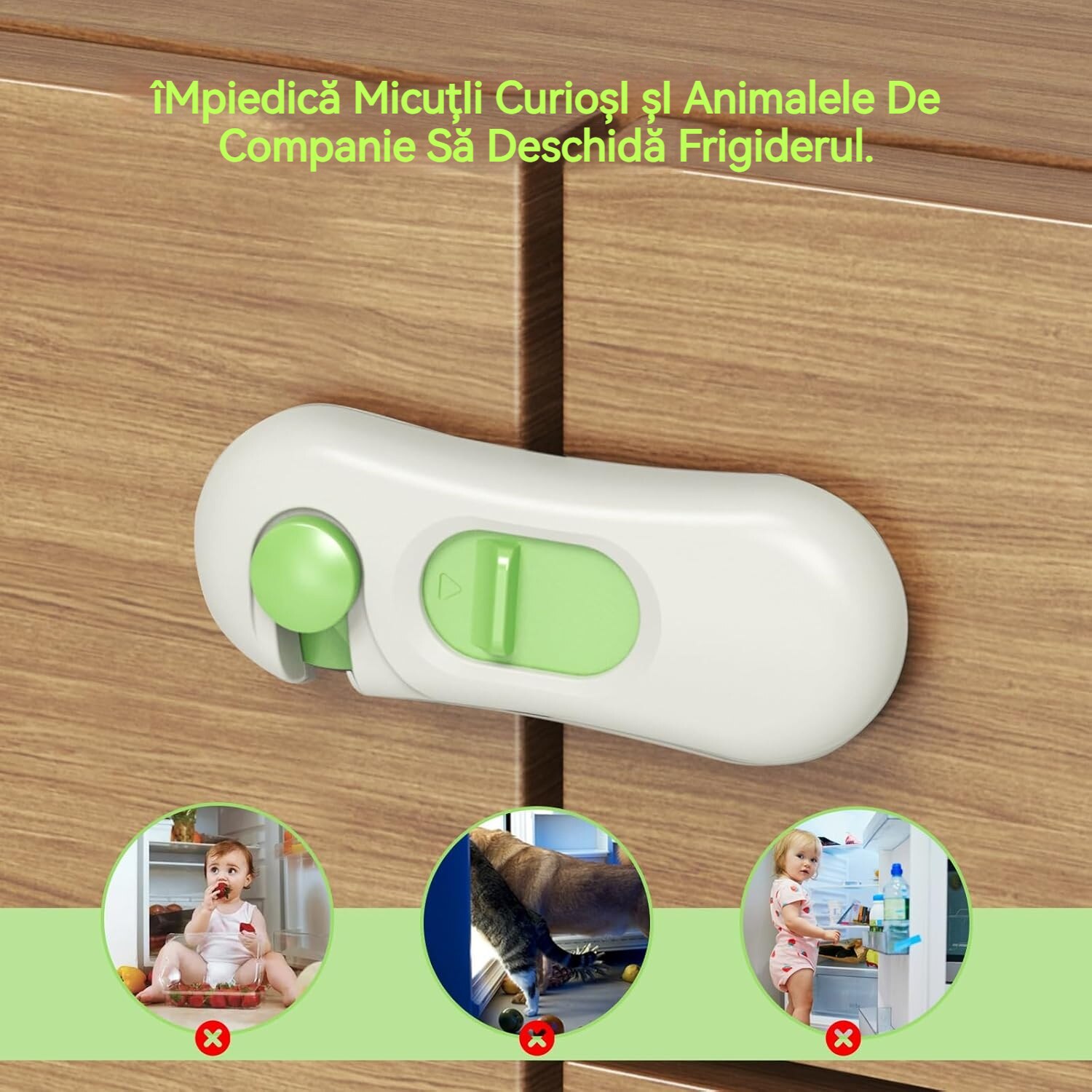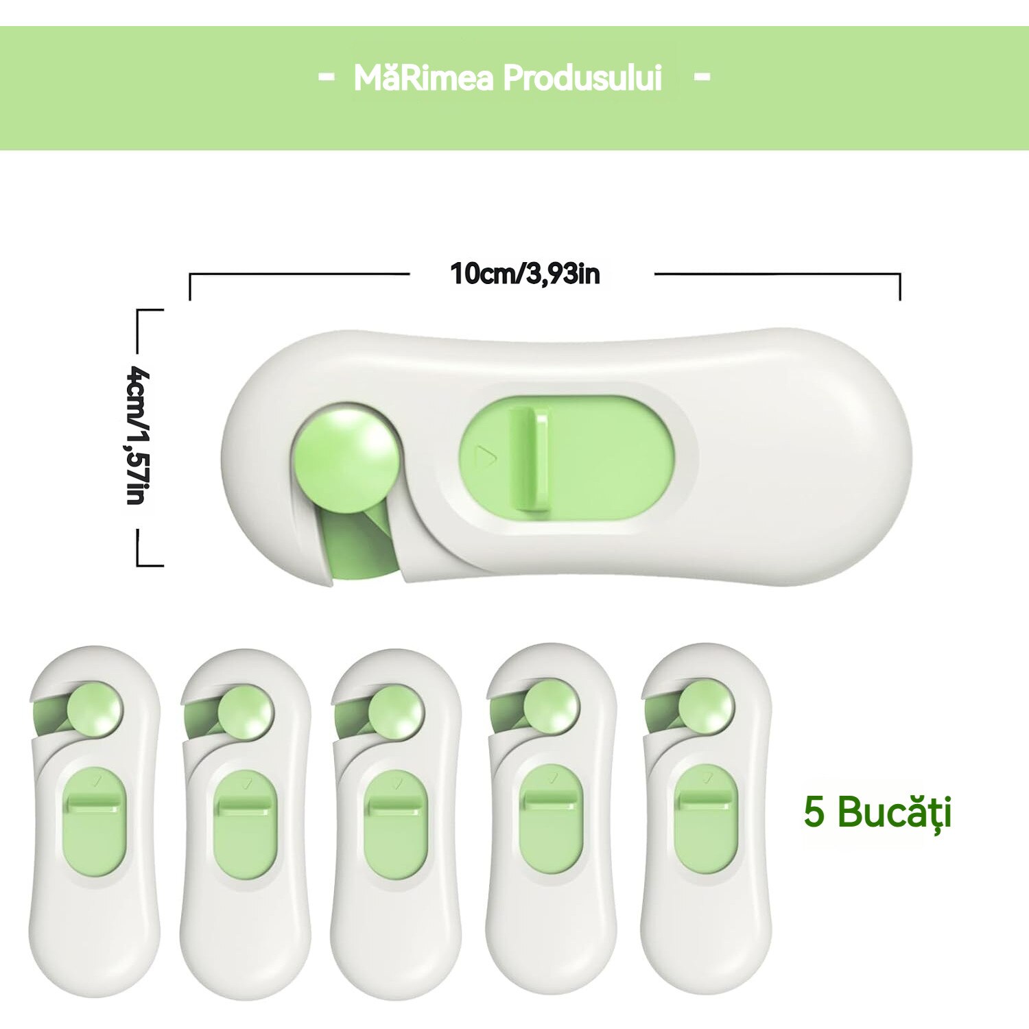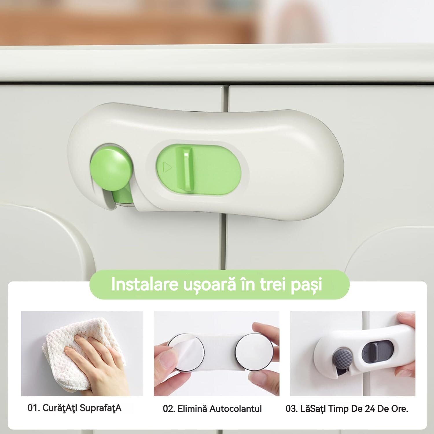 Descrierea Produsului: CALETII DE SECURITATE PENTRU COPII AKESON ofera o solutie practica pentru protejarea casei impotriva accesului neautorizat al copiilor, prevenind deschiderea cabinelor, sertarelor si altor zone potential periculoase. Cu o baza de adeziv sigura, aceste incuietori de securitate verzi sunt rapide si usor de instalat pe diverse tipuri de mobilier, inclusiv sertare, cabinete cu usi duble si dozatoare de apa. Proiectate cu un mecanism simplu de glisare, permit accesul facil pentru adulti, in timp ce raman dificile pentru mainile mici, asigurand siguranta maxima pentru micutii dvs. fara a deteriora mobilierul.