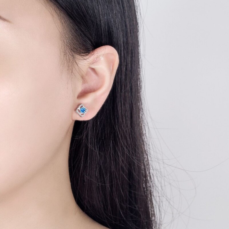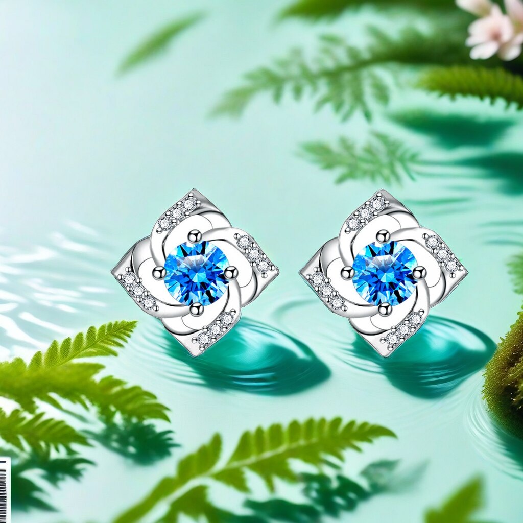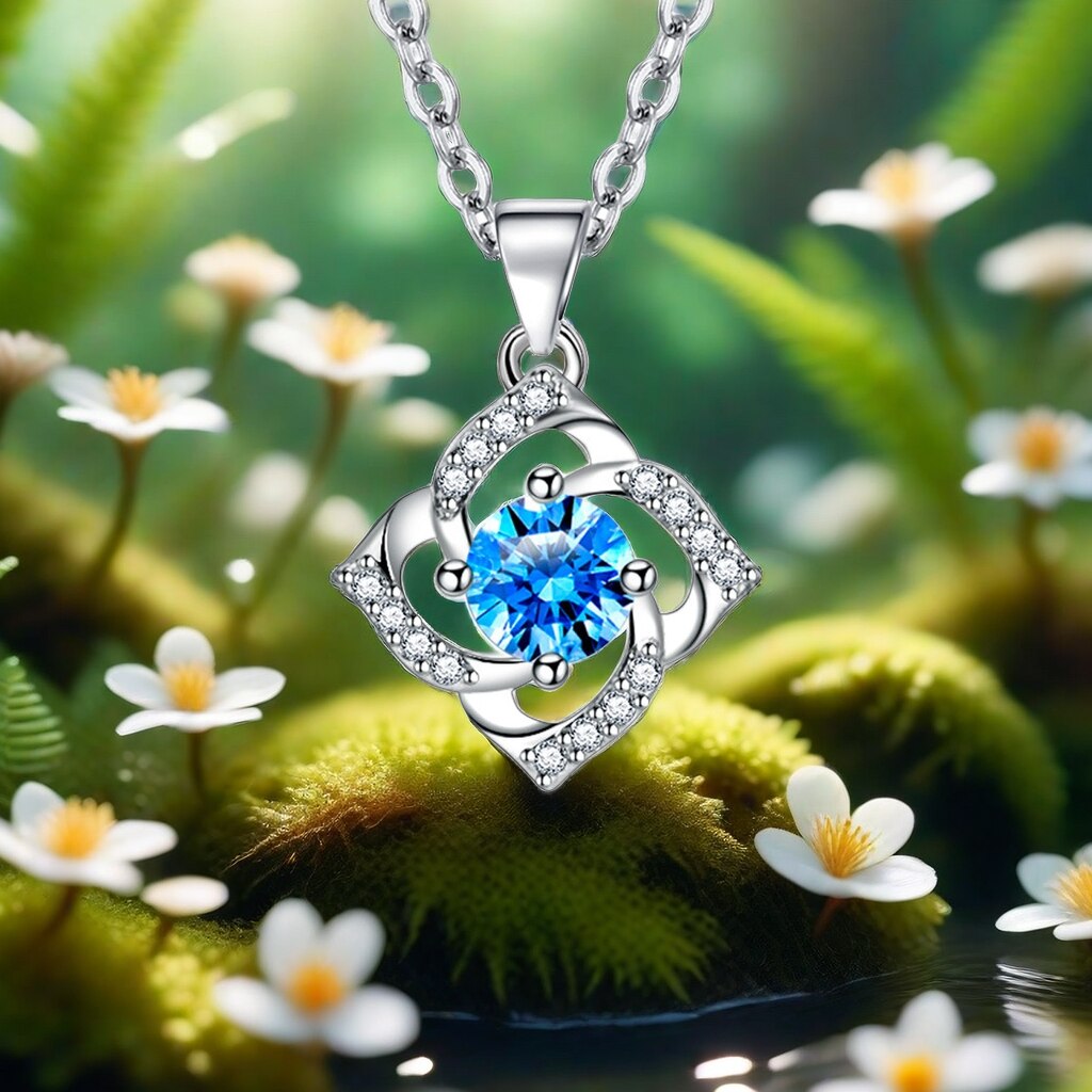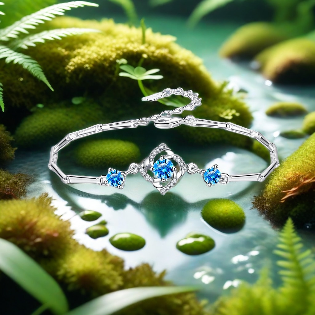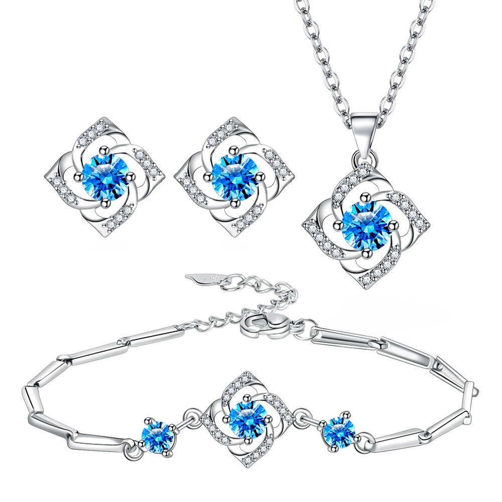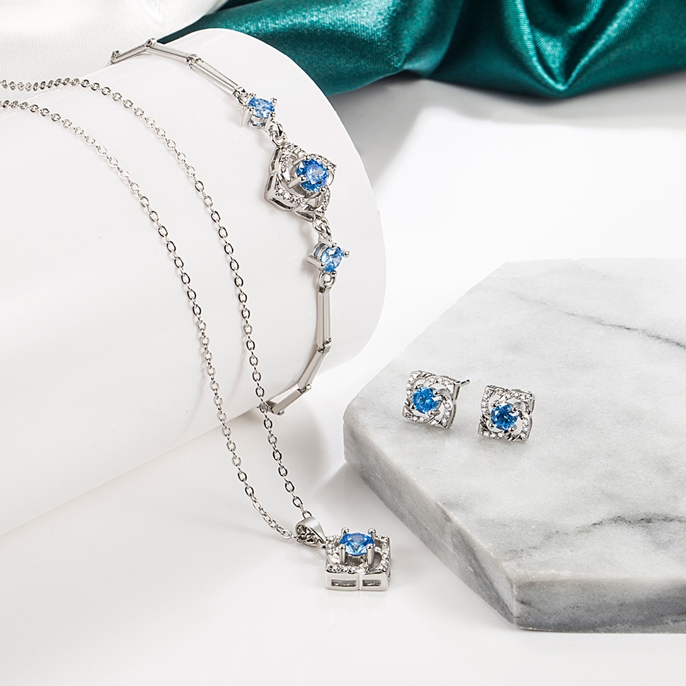 Set de bijuterii trifoi cu patru frunze, cercei, bratara si colier, argint S925, albastru, 3 buc