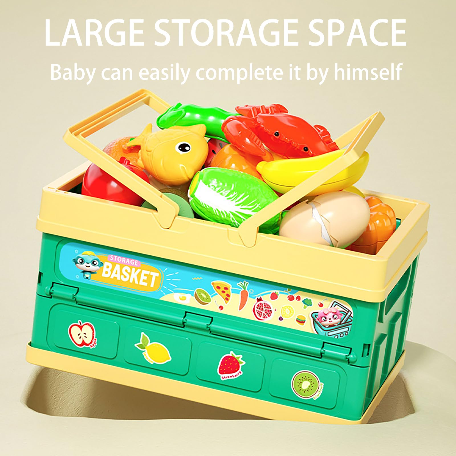 Set de bucatarie pentru copii 38 piese, PHIKER, jucarii alimentare cu cos pliabil, culori vibrante, usor de transportat