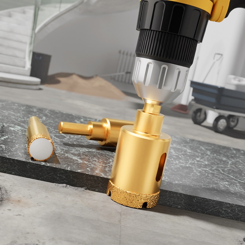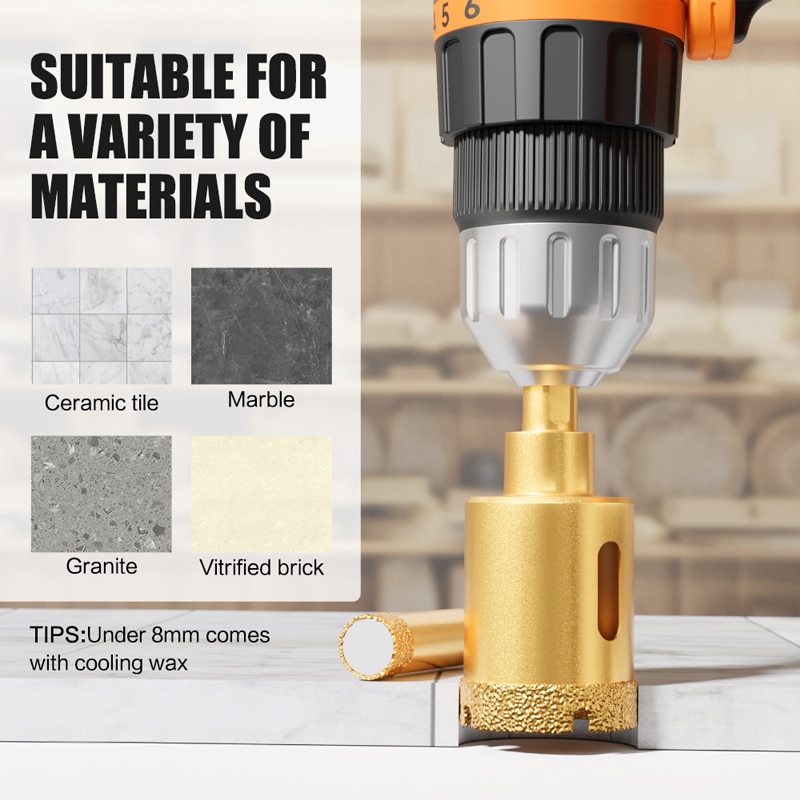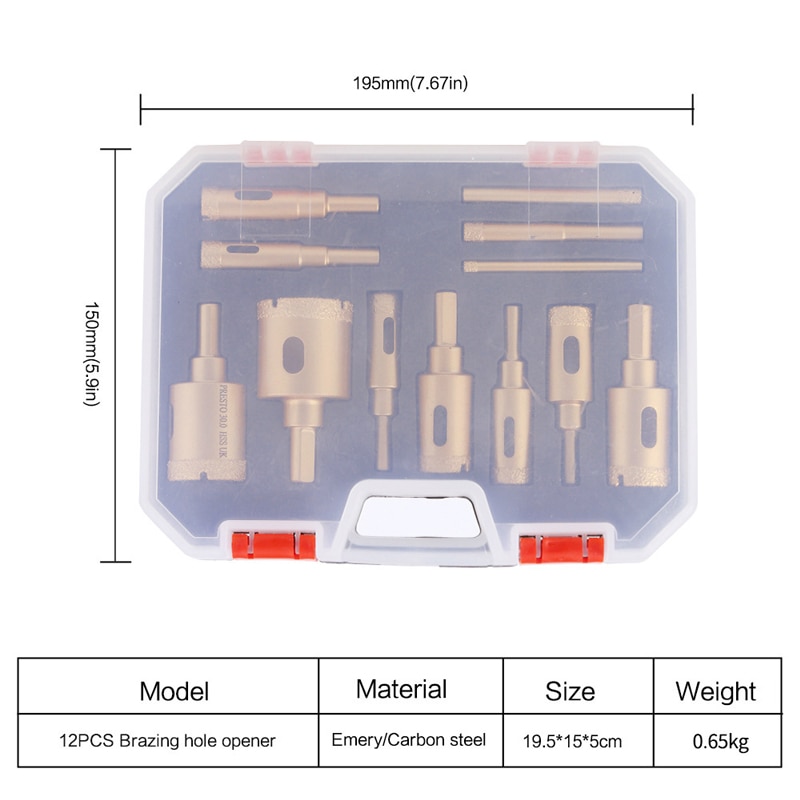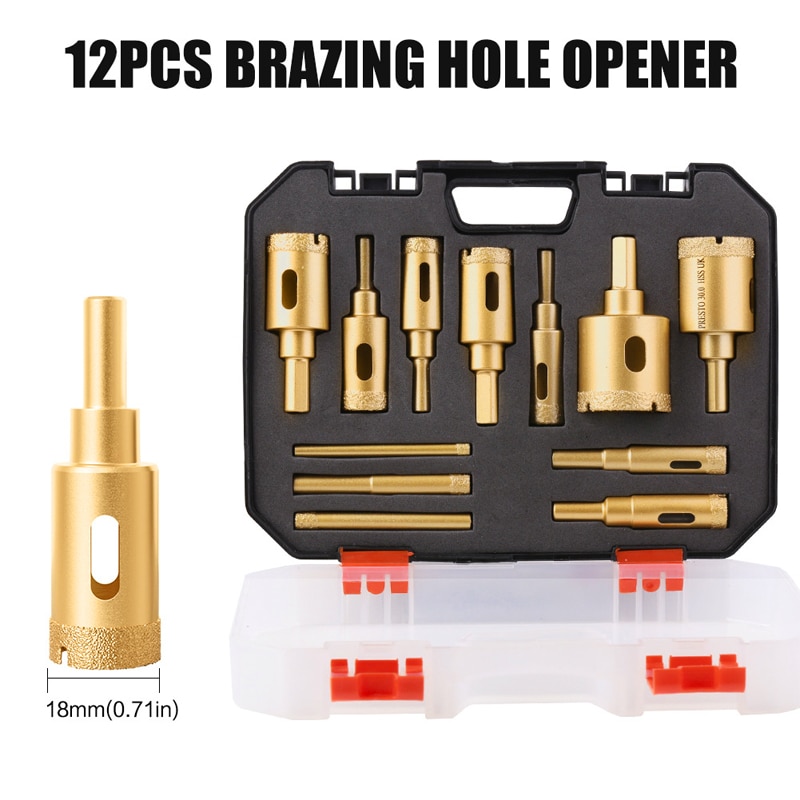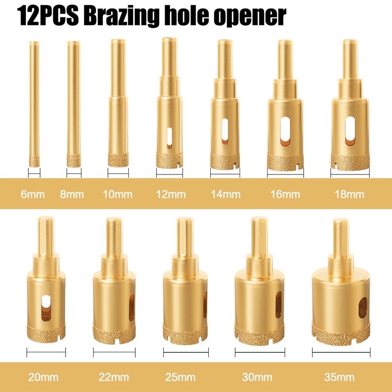 Set de burghie cu diamant Autocise, 12PCS 6x35mm, pentru ceramica, cutie de transport, aurie