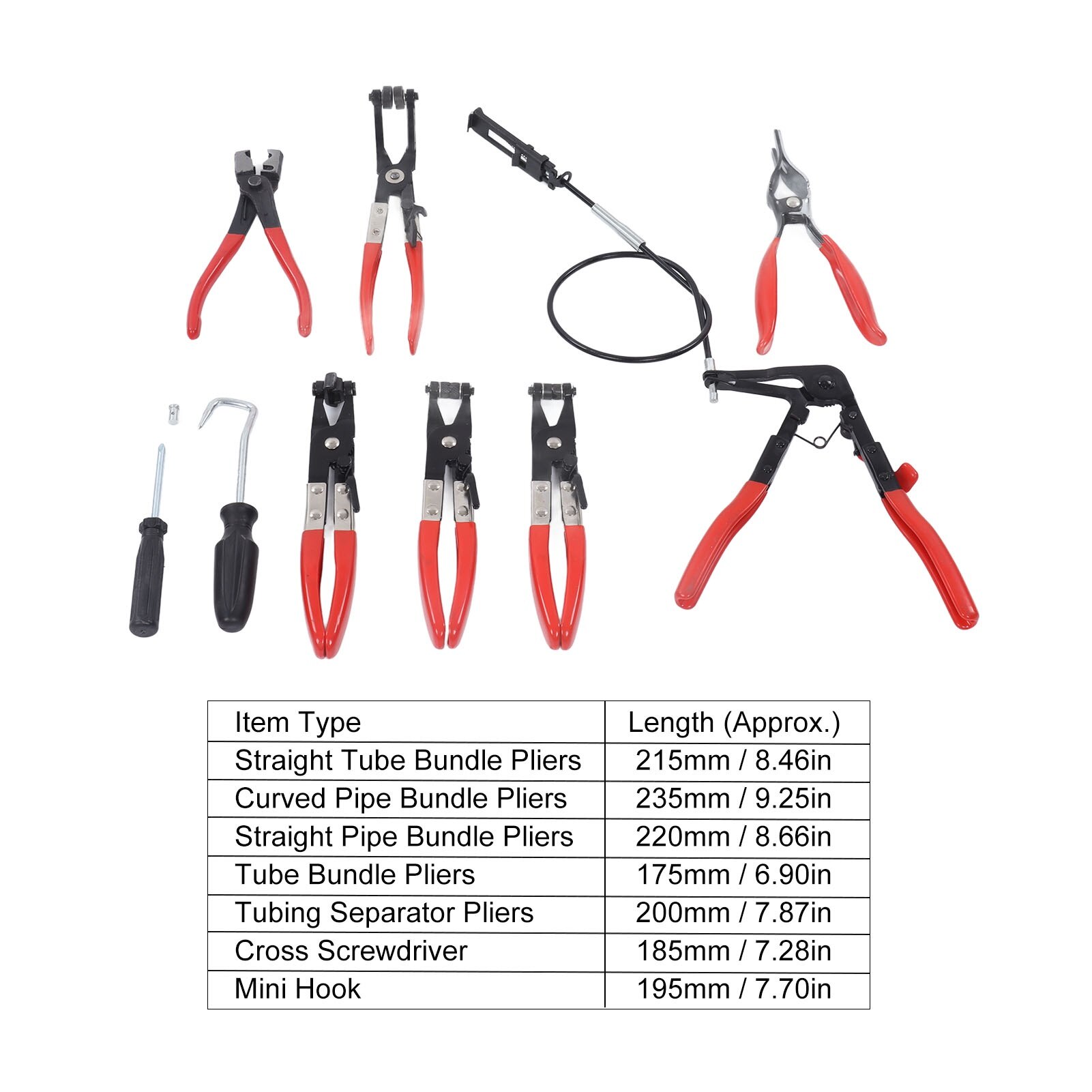 Set de clesti pentru furtunuri, Enforose, 9 piese, otel nichel cromat, manere din cauciuc, dimensiuni variate