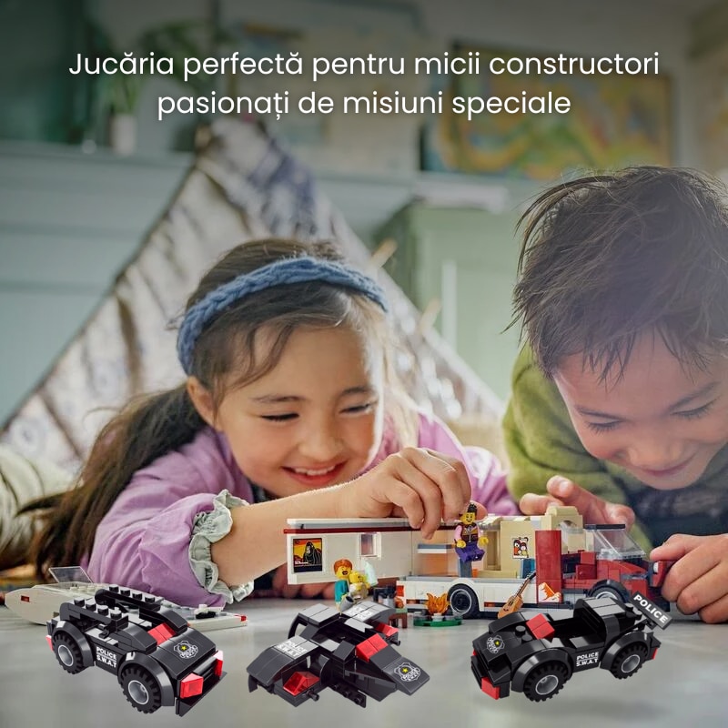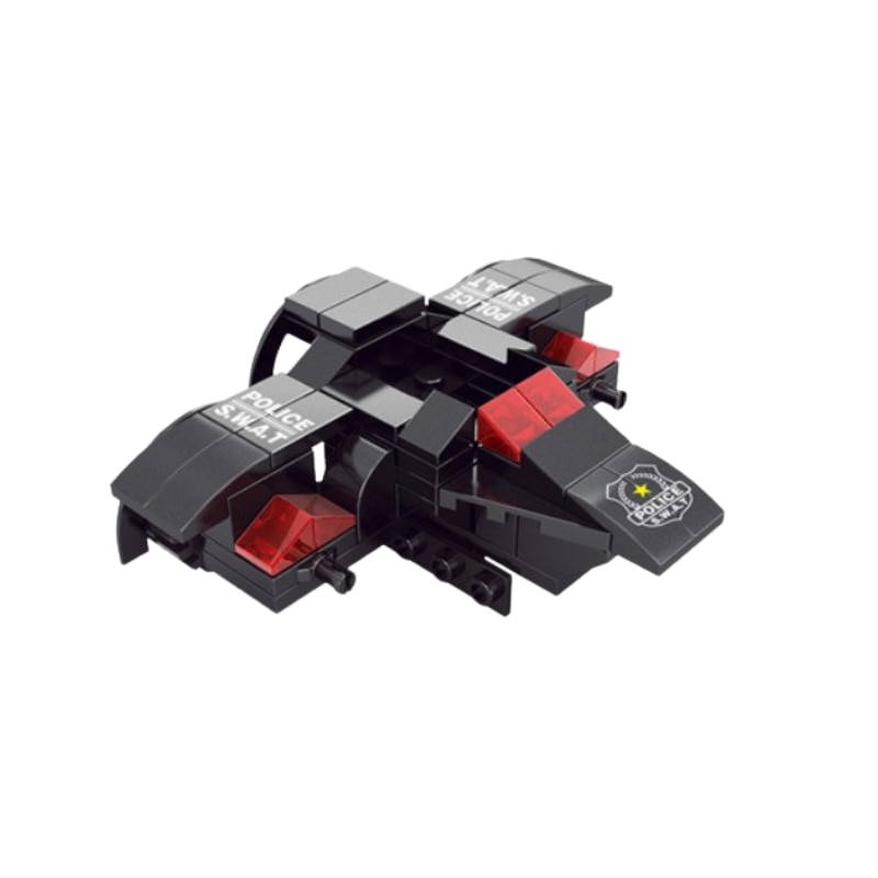 Set de constructie 3-in-1 Politie SWAT, ANCIBI, Masina, Avion, Masina Blindata, Set complet, Pentru creativitate si imaginatie, Pentru copii intre 4-6 ani, Negru