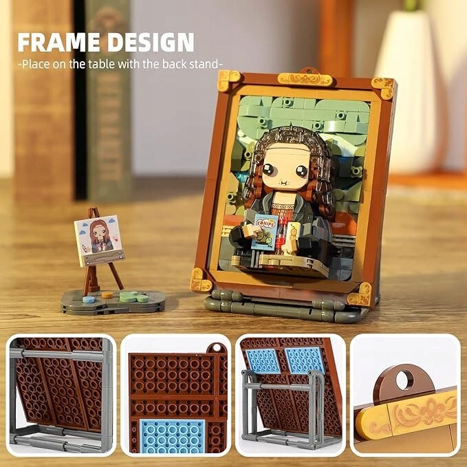 Set de constructie creativ, SinPi, replica artistica a tabloului Mona Lisa, 604 piese multicolore, pentru dezvoltarea imaginatiei copiilor si adultilor, decoratiune unica pentru casa, asamblare distractiva si educativa