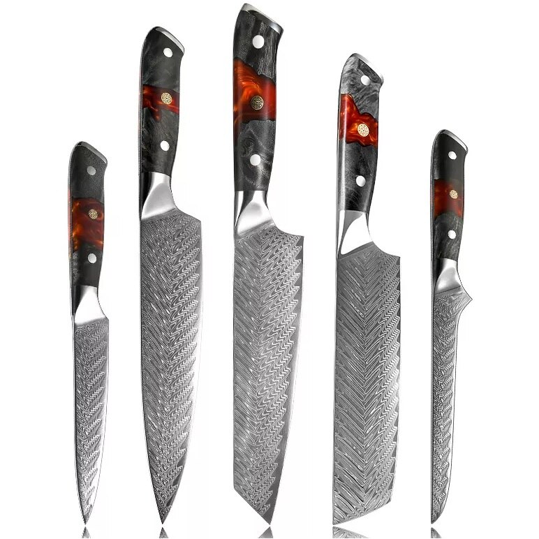 Set de Cutite de Bucatarie Damasciene IZMAEL OK-19991, 5 buc, otel VG-10, negru-maro, 26x20cm