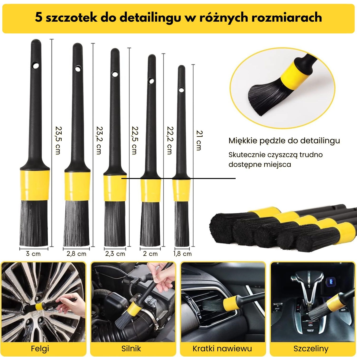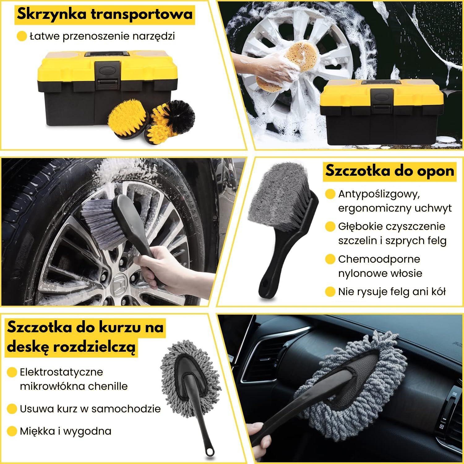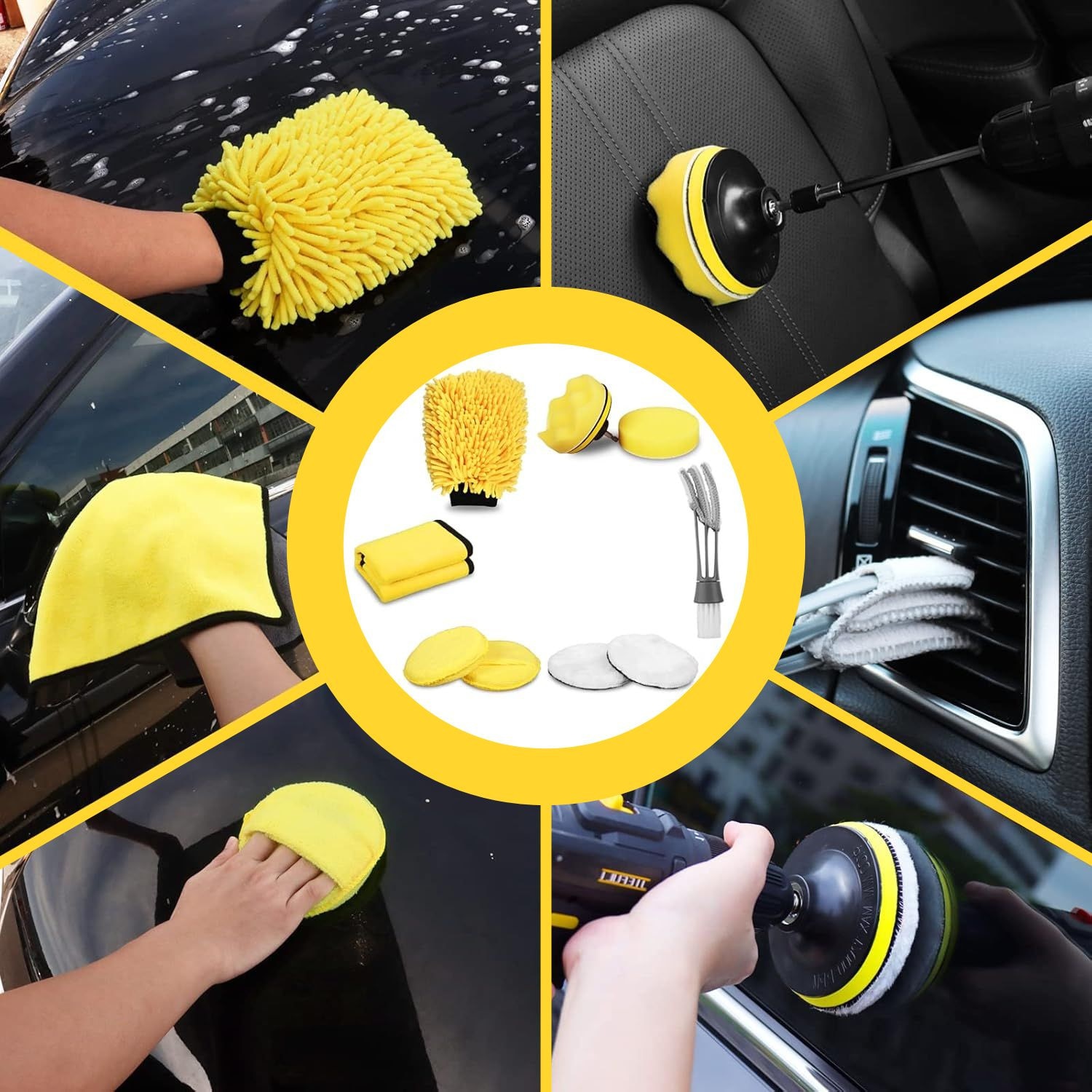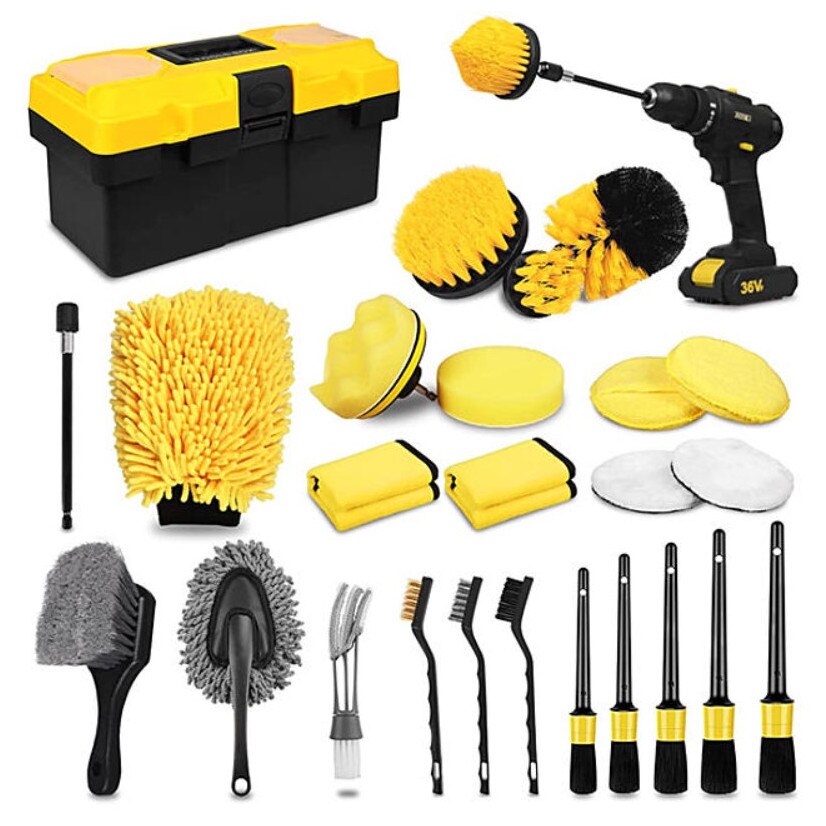Set de detailing, Luxtom, 27 in 1, Galben, 26 de elemente, Profesional pentru curatarea masinii, Nylon