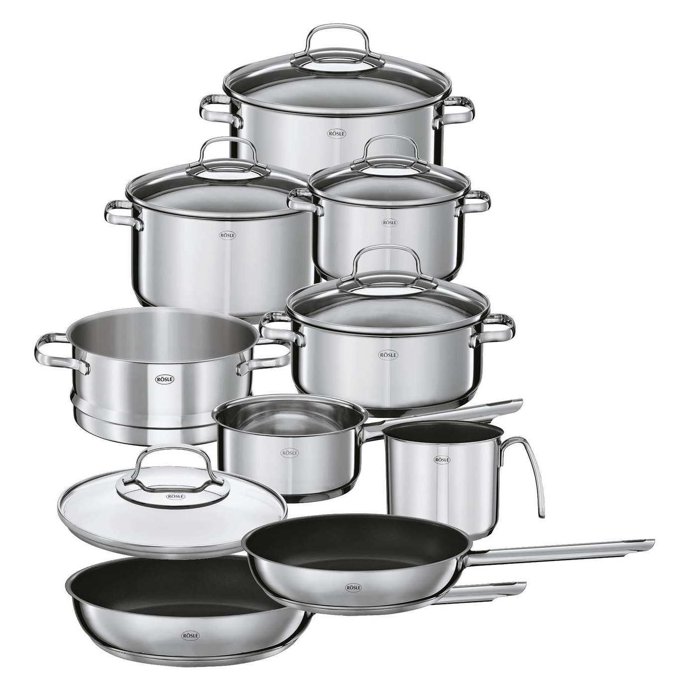 Set De Vase RÖSLE Elegance, 10 Piese, Oale De Gatit, Tigai, Otel Inoxidabil 18/10, Capac De Sticla