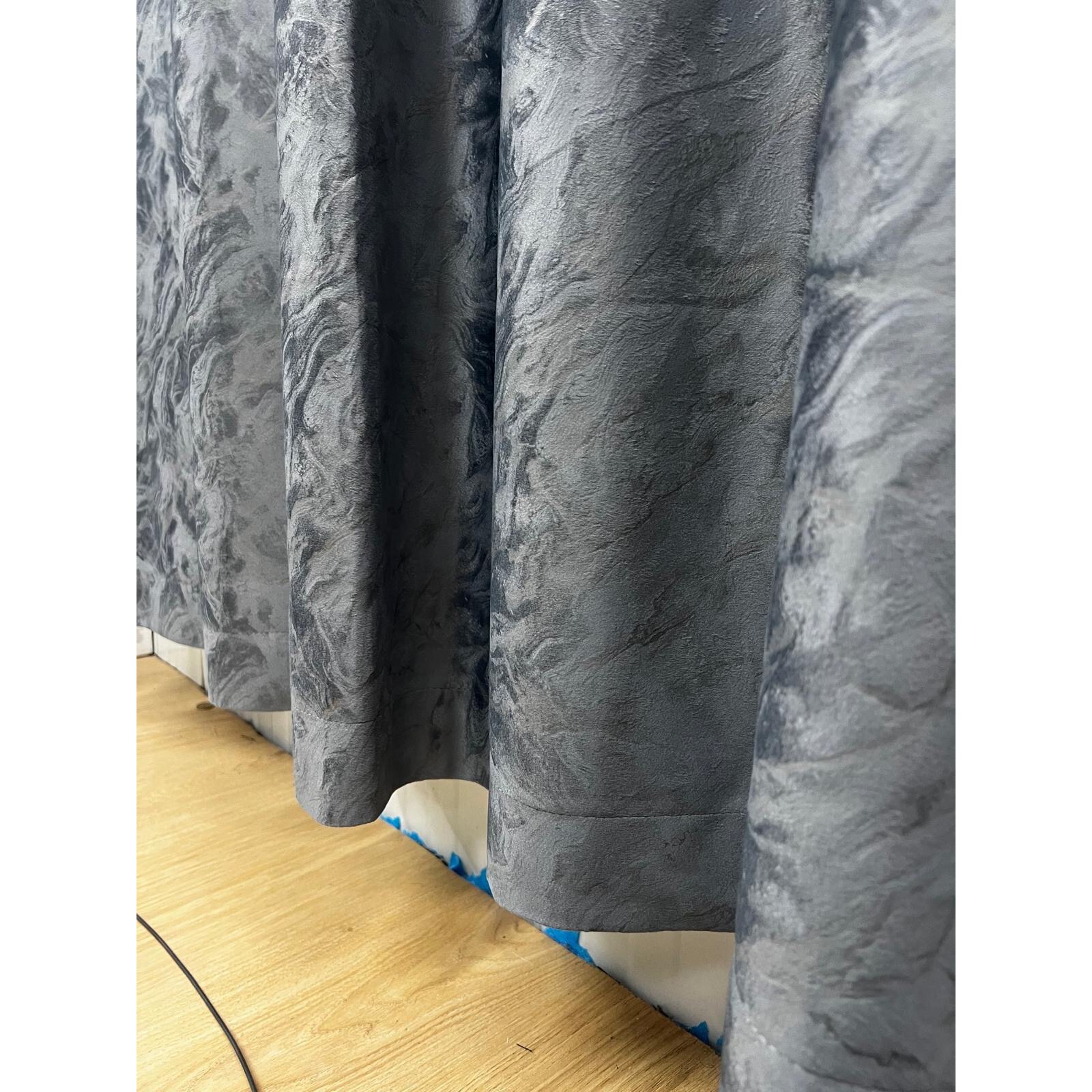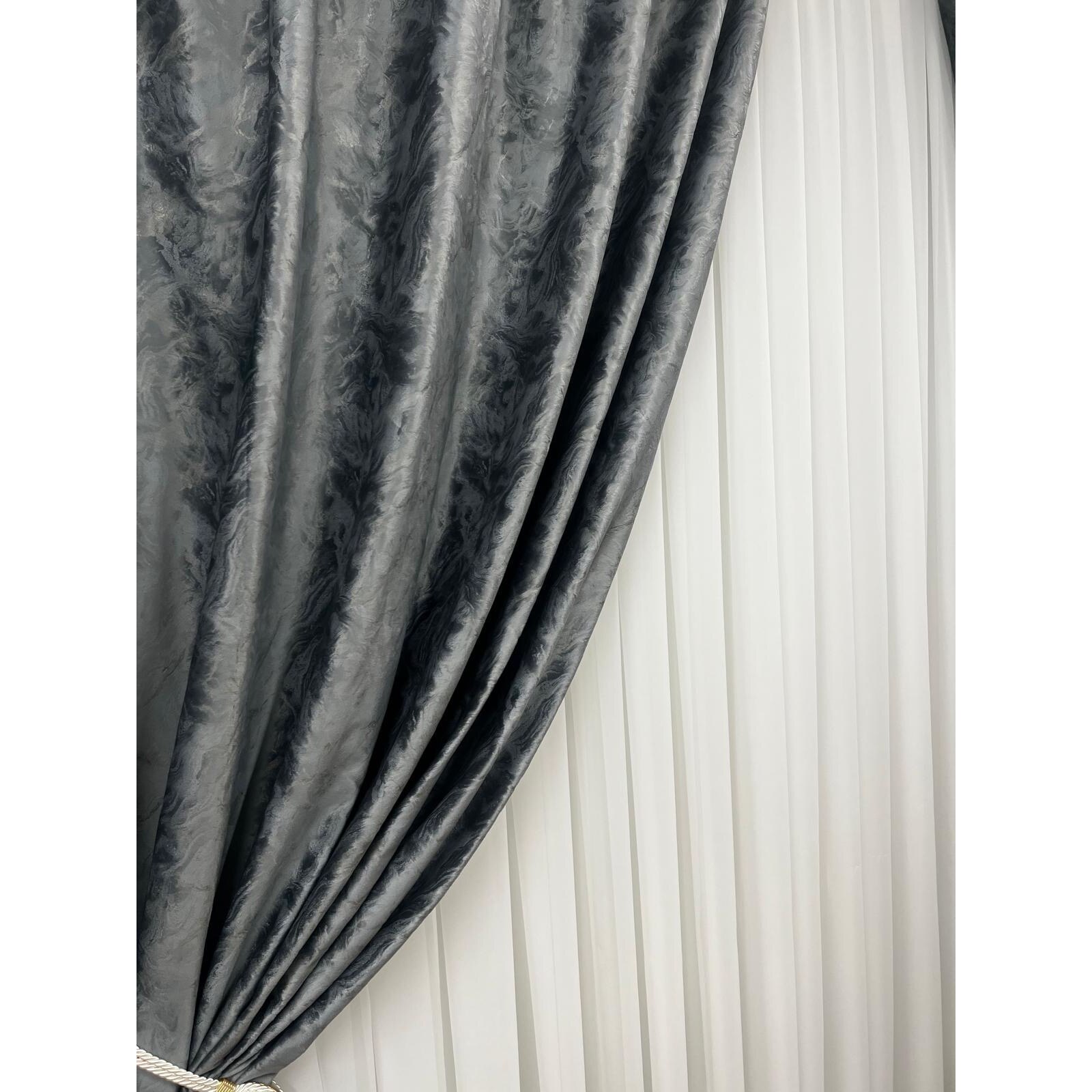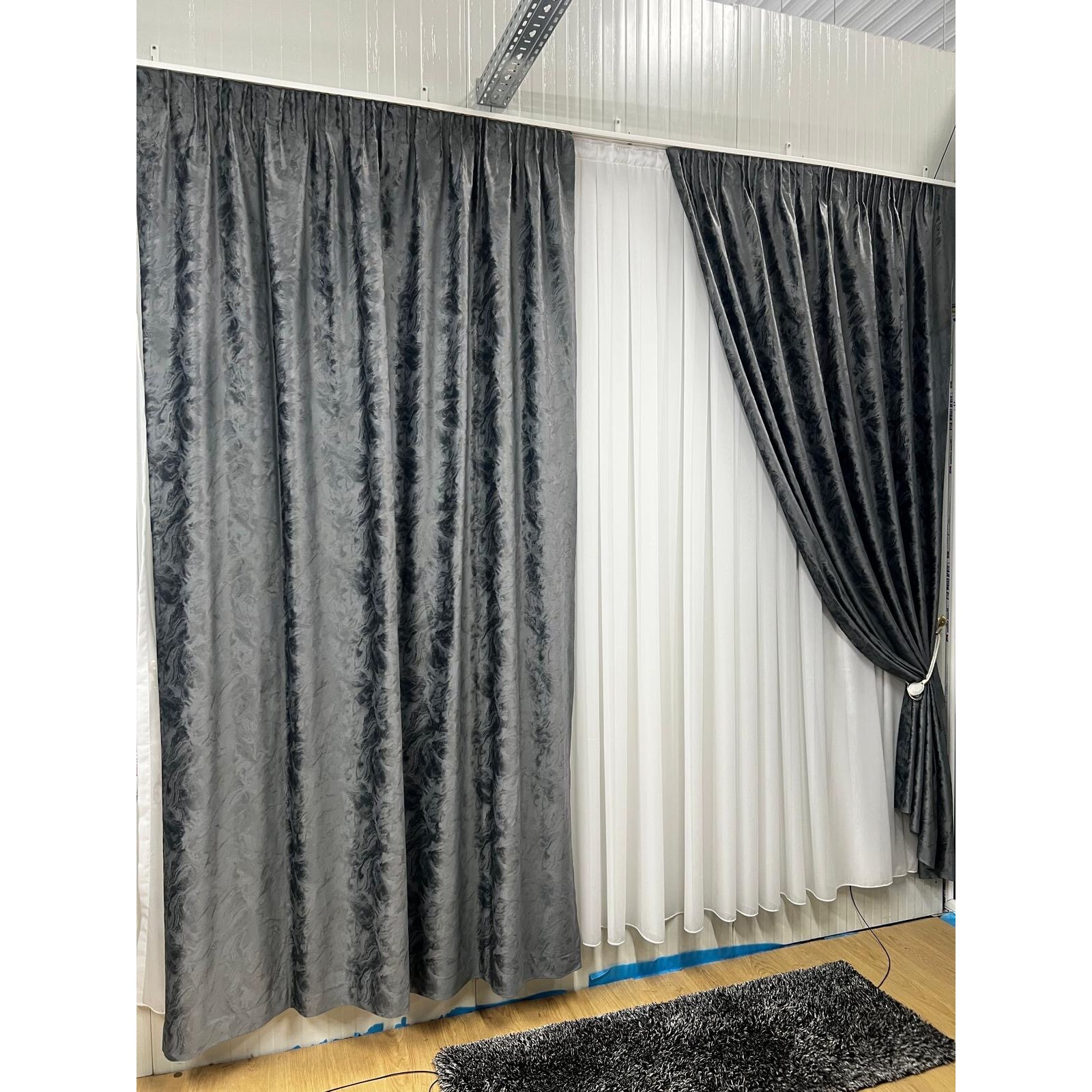 Set doua draperii catifea imprimata Sanremo, gri inchis, lucrata pe rejansa lata de 10 cm, 2x300x250 cm