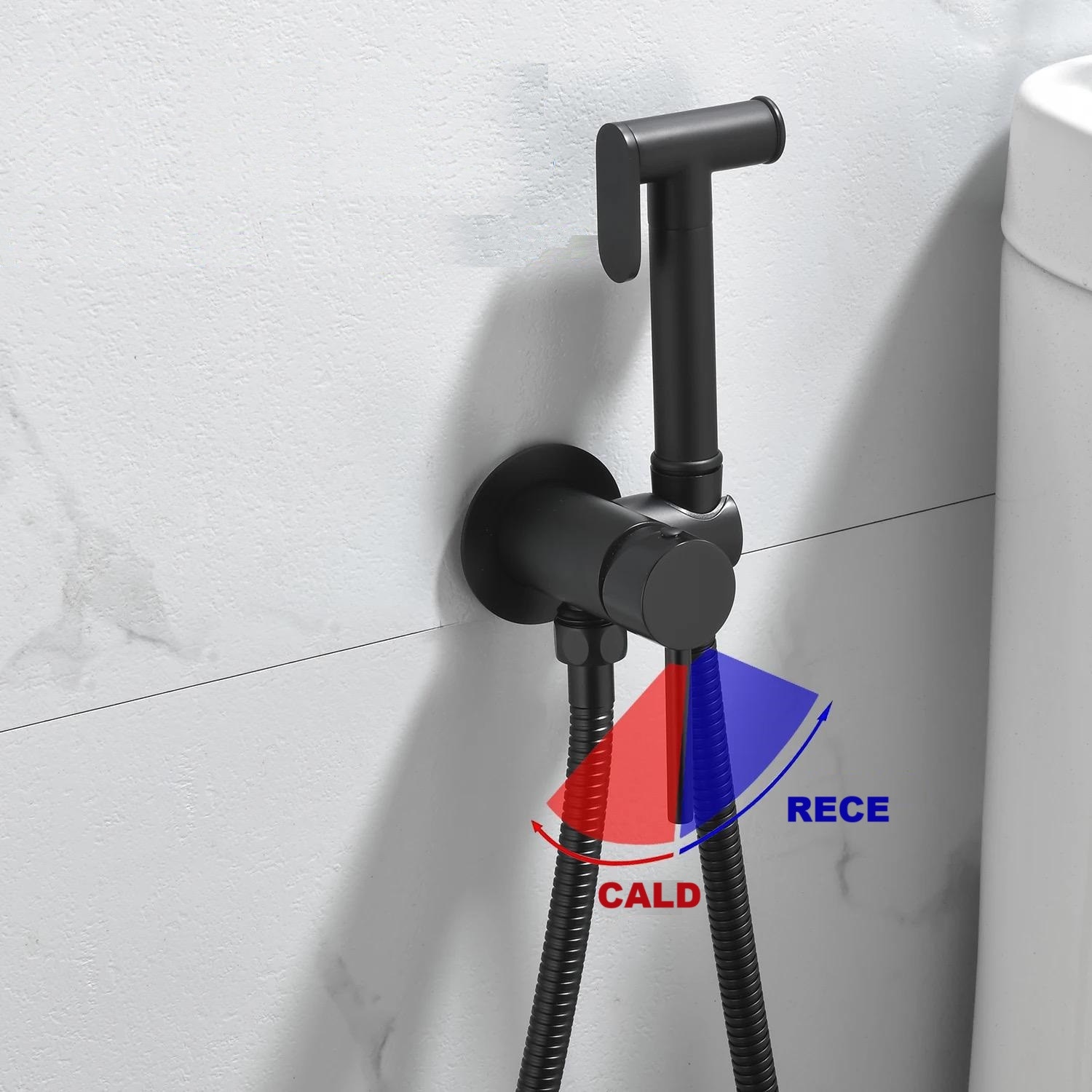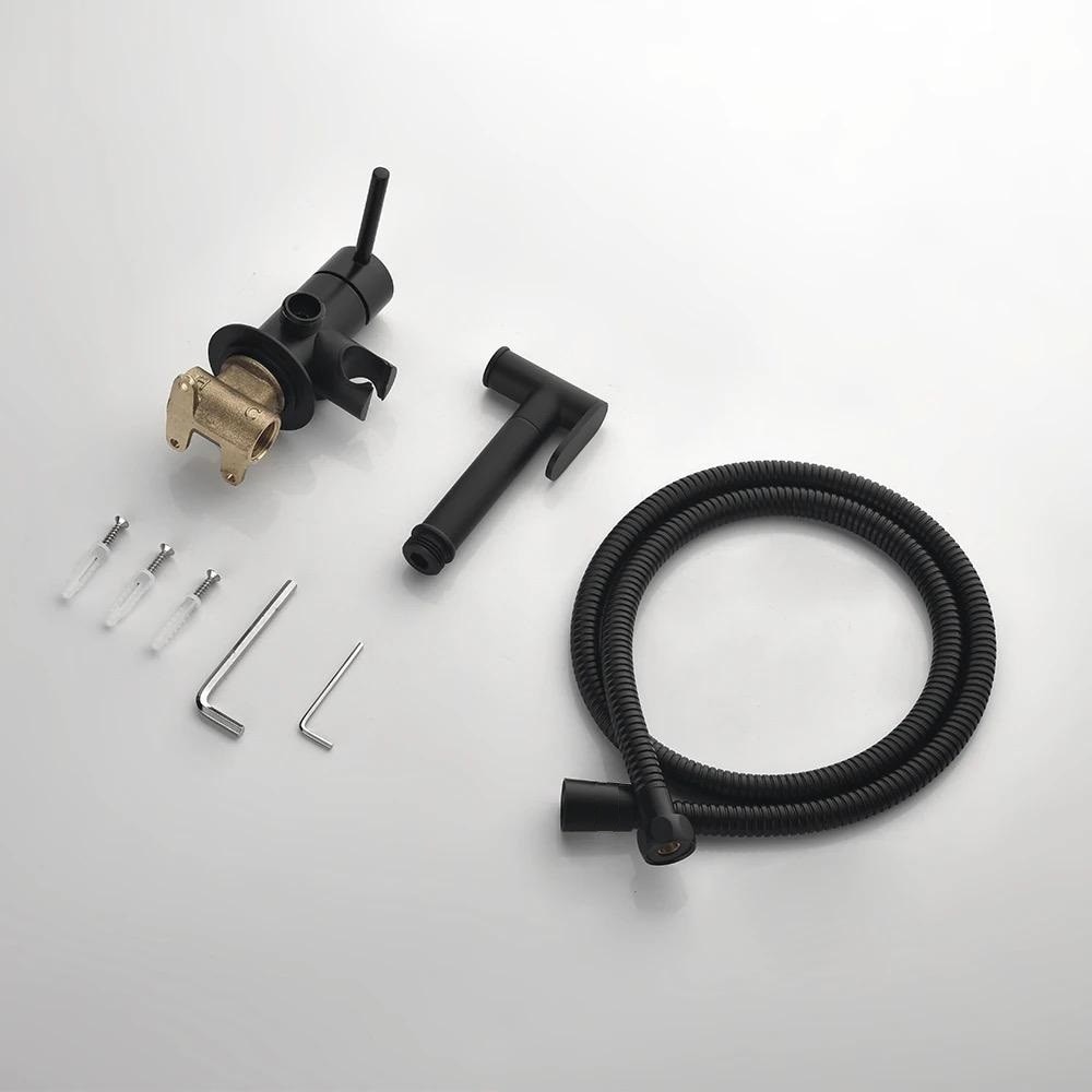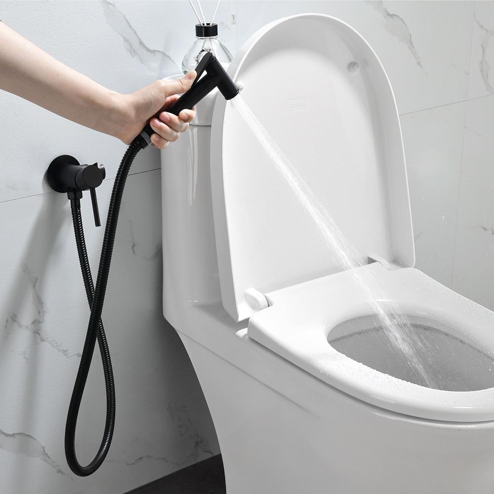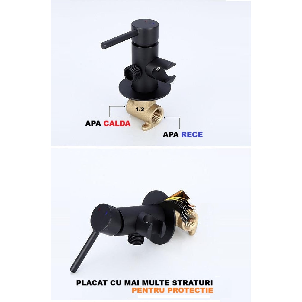 Set dus igienic, tip intim cu robinet, doua cai, apa Calda/Rece pentru Bideu sau Wc, cu baterie incastrata, Negru mat, Rain Drop de la Robinetul Meu