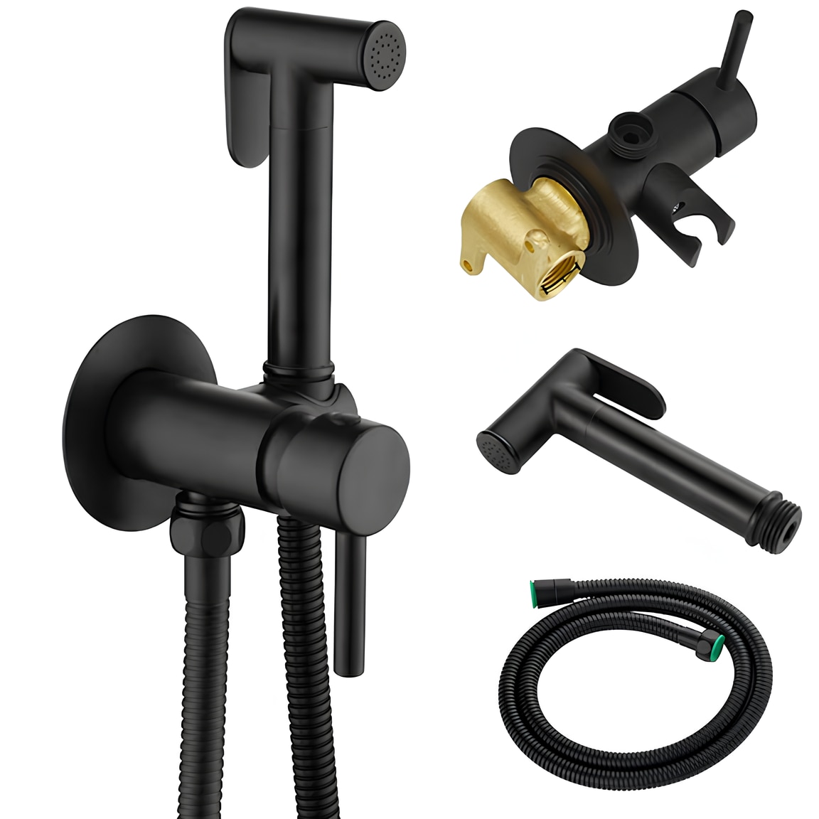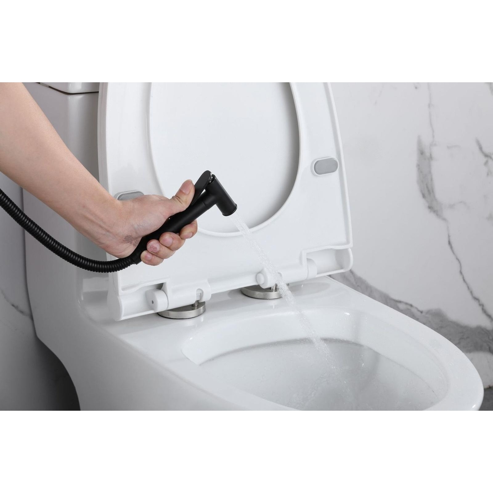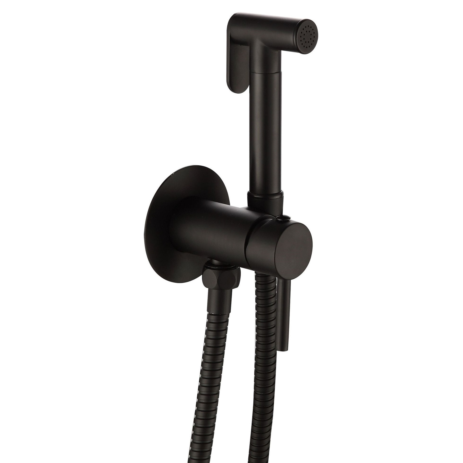 Set dus igienic, tip intim cu robinet, doua cai, apa Calda/Rece pentru Bideu sau Wc, cu baterie incastrata, Negru mat, Rain Drop de la Robinetul Meu