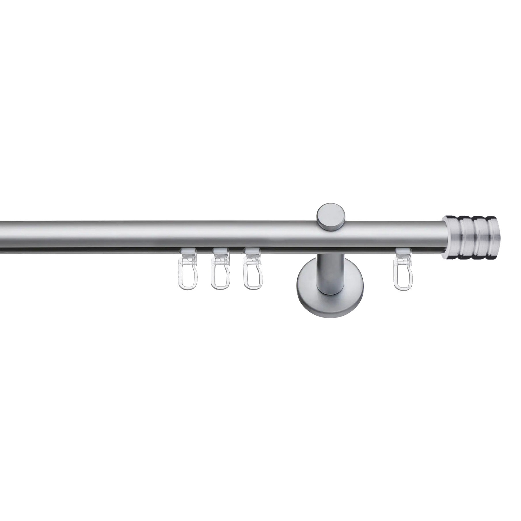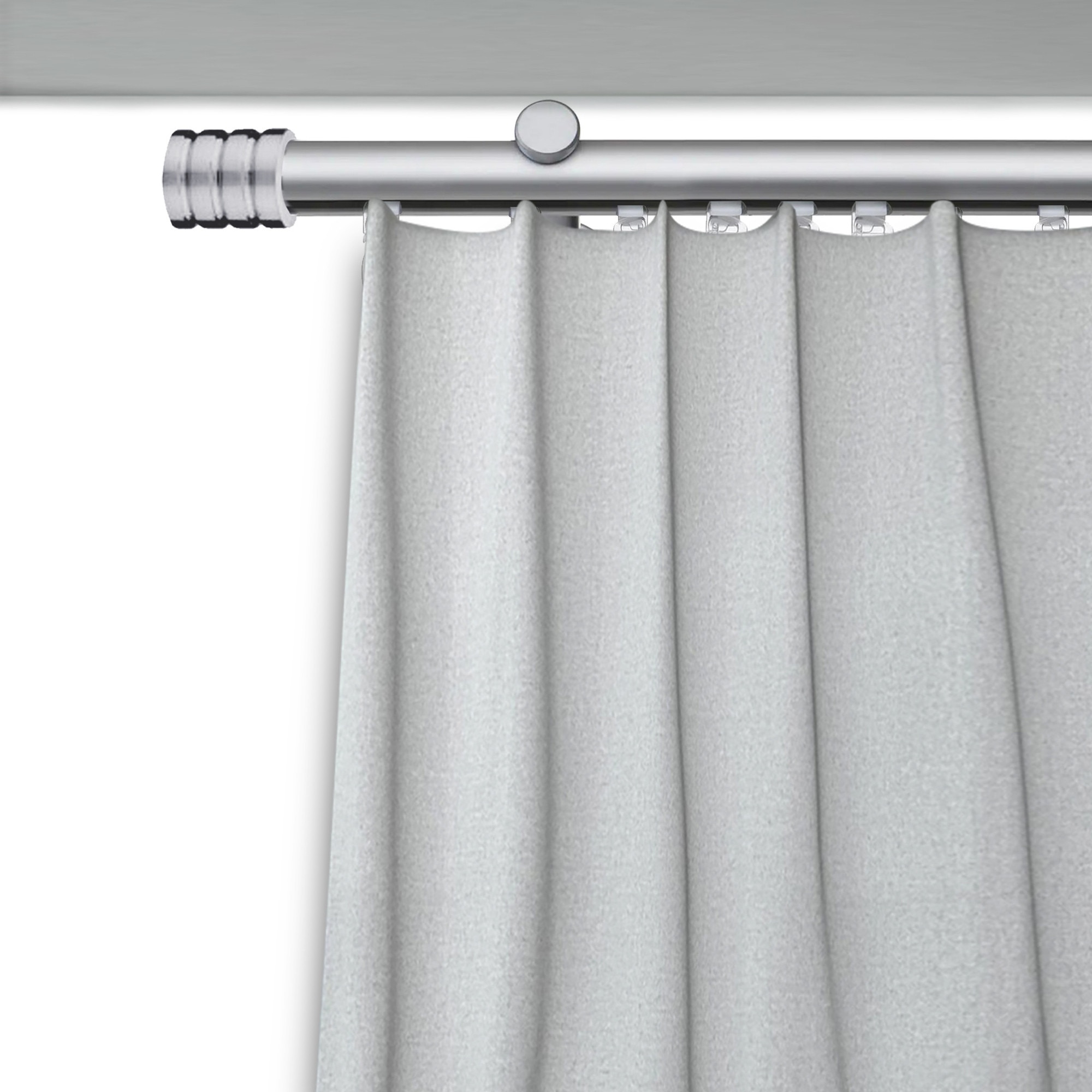 Set galerie metalica Cilindru striat, simpla, tip profil, nichel satinat, Ø 19 mm, 400 cm - 2 x 200 cm cu element de legatura, accesorii incluse