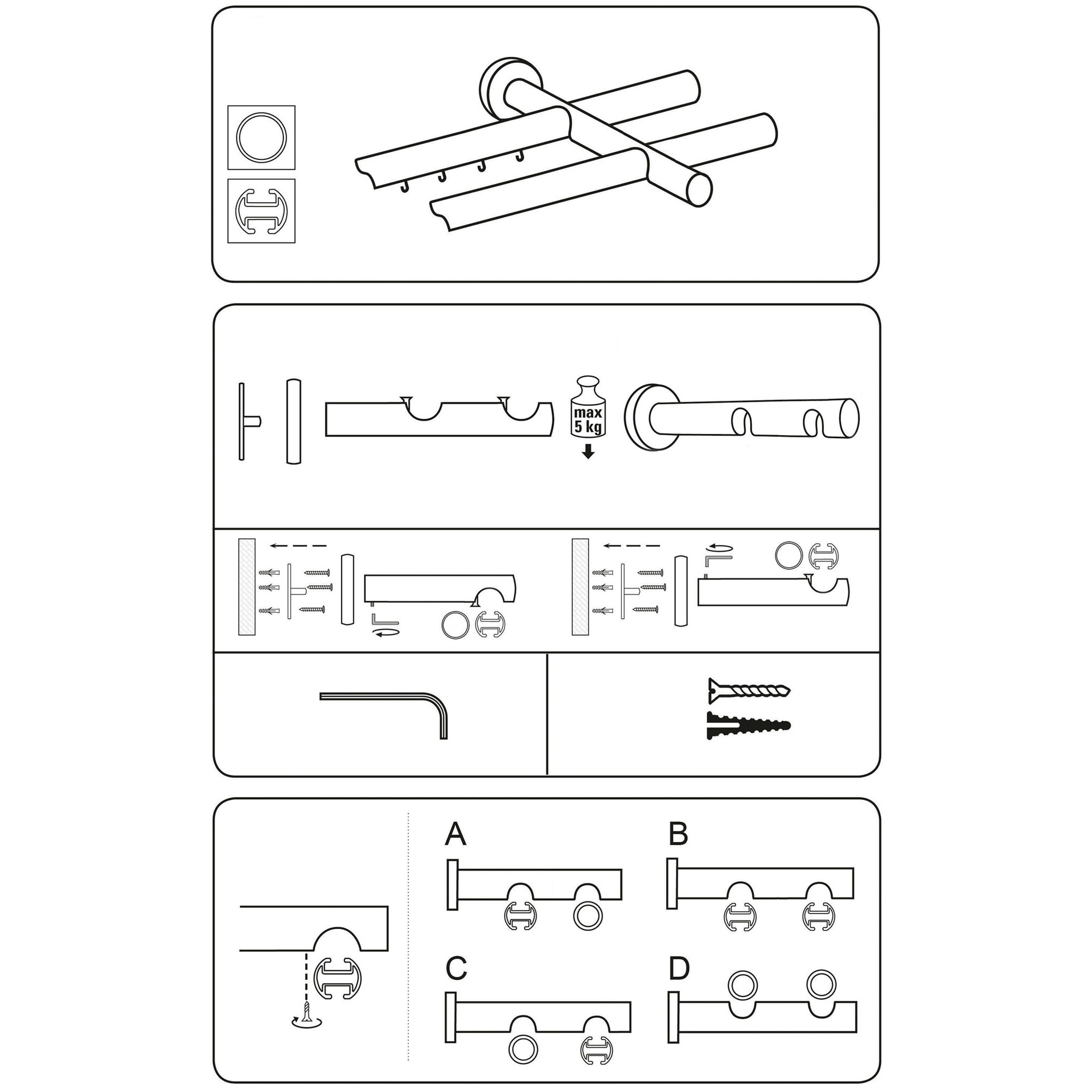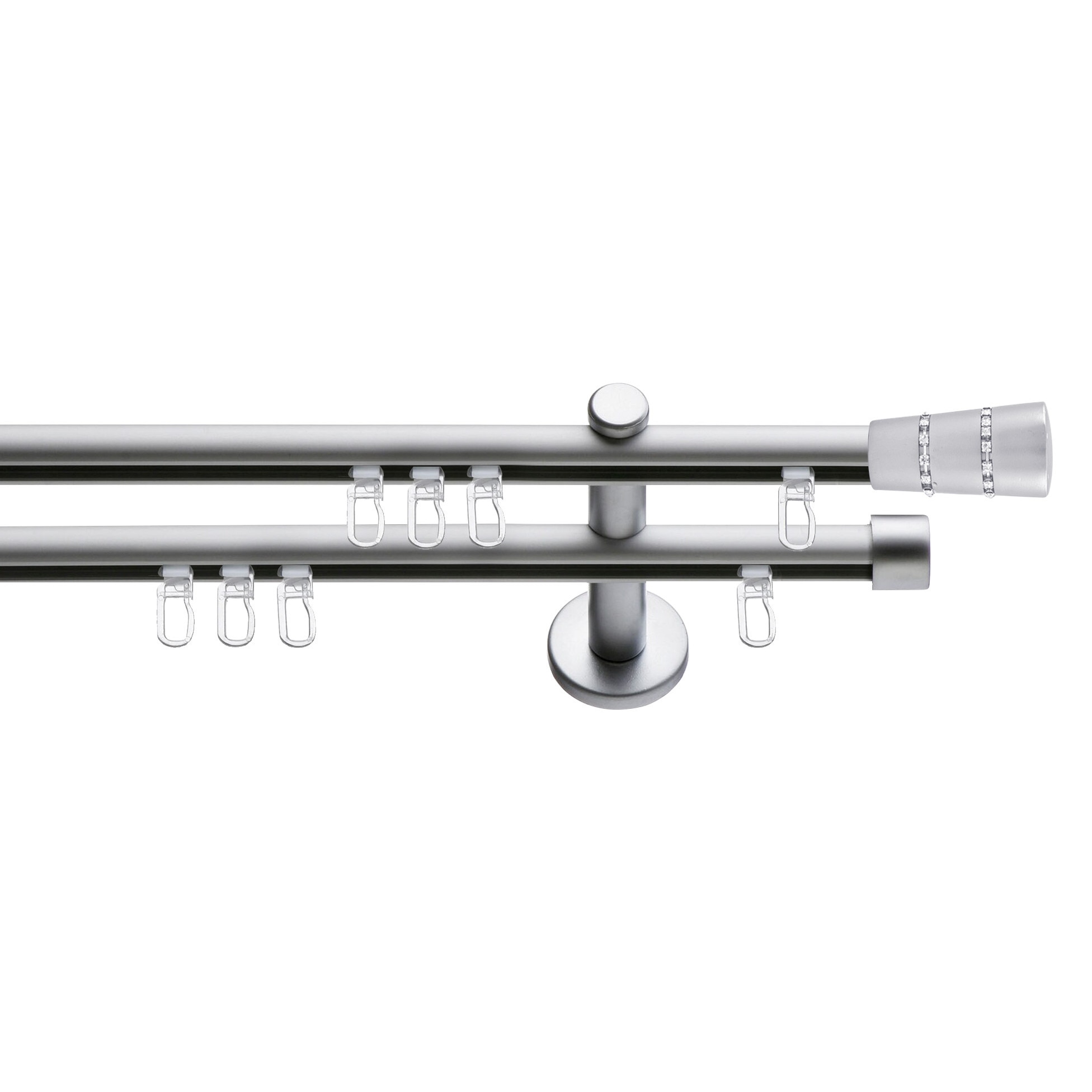 Set galerie metalica Con Briliant, dubla, tip profil, nichel satinat, Ø 19 mm, 320 cm - 4 x 160 cm cu element de legatura, accesorii incluse