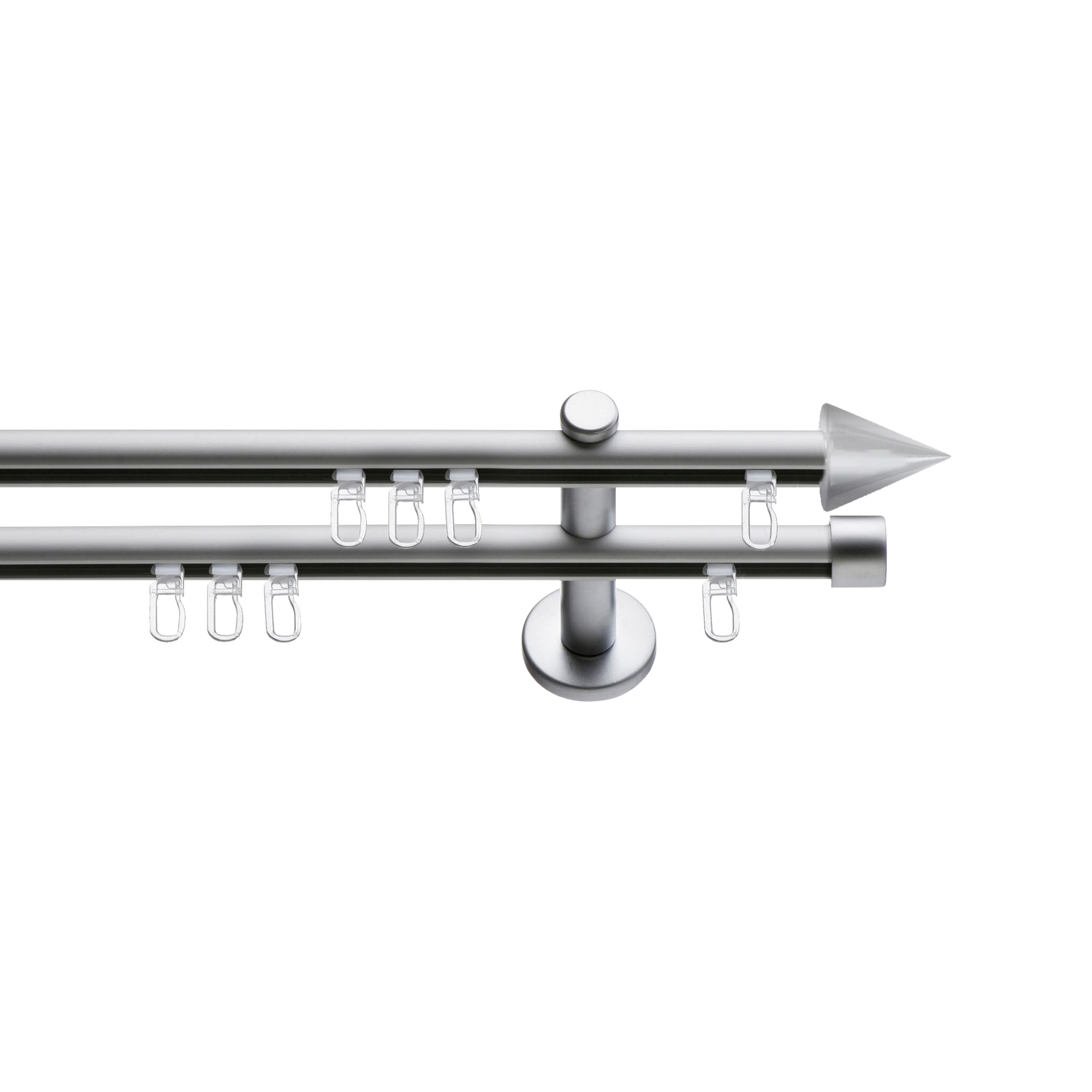 Set galerie metalica Con, dubla, tip profil, nichel satinat, Ø 16 mm, 160 cm, accesorii incluse