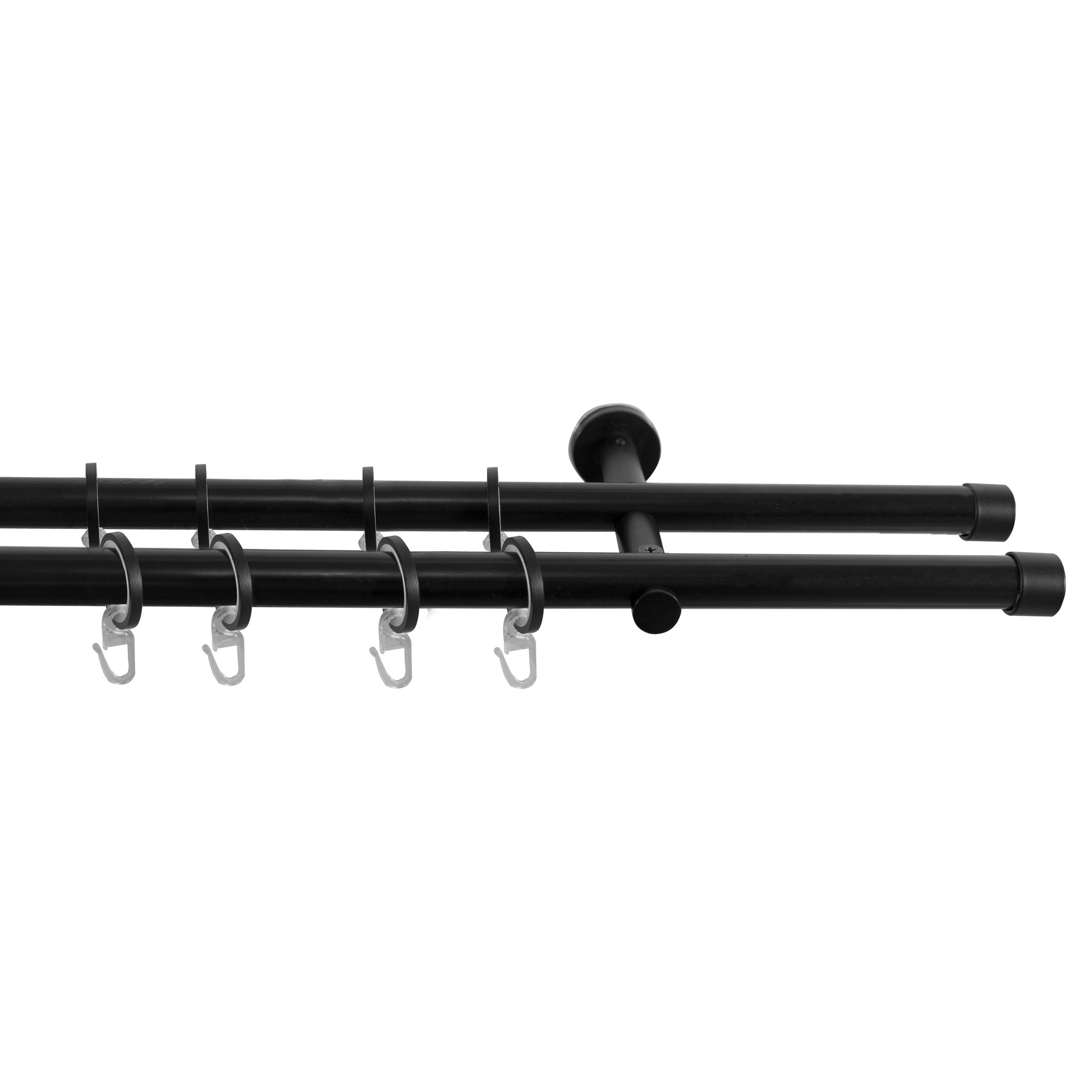 Set galerie metalica Dop, dubla, cu consola plata, negru, Ø 16 mm, 320 cm - 2 x 160 cm cu element de legatura, accesorii incluse