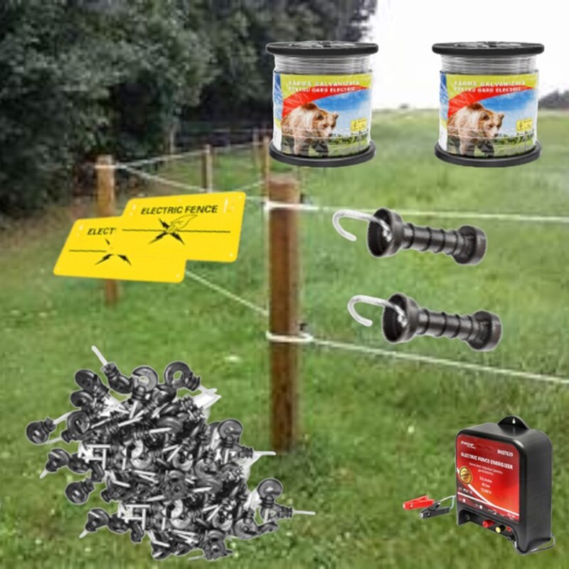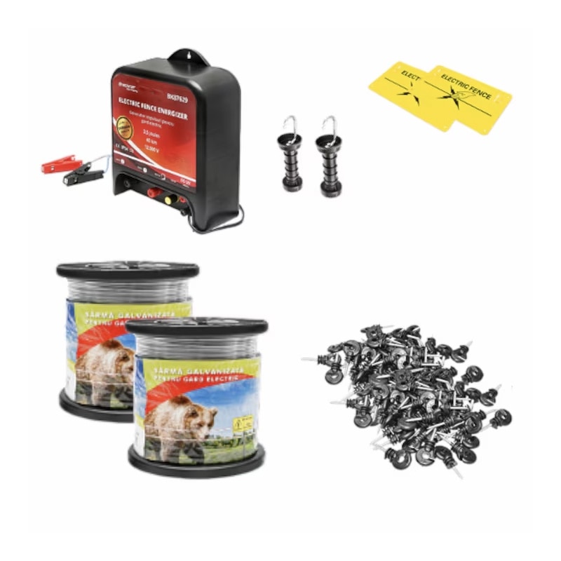 Set gard electric 3.5 Joule / 12V, 200 bucati izolatori stalpi, 2 bucati izolatori sistem acees, 1km liniar sarma, placute avertizare, Yupy®